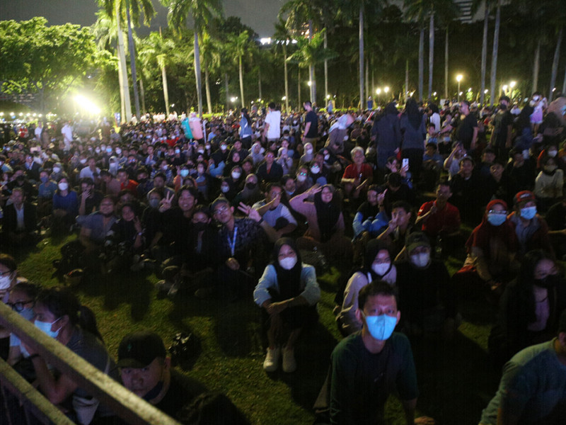 Ribuan warga menikmati alunan musik klasik karya komposer dunia seperti Beethoven, Haydn, Tchaikovsky dan Mozart di Monas, Jakarta Pusat, Minggu (23/10). Event bertajuk \"Konser Akbar Monas 2022\" tersebut merupakan kolaborasi antara Dinas Pariwisata Ekonomi Kreatif (Parekraf) DKI Jakarta bersama Jakarta Simfonia Orchestra dan Jakarta Oratoria Society. (Foto: Mochamad Tresna Suheryanto/beritajakarta.id)