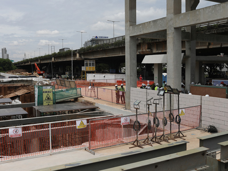 Penjabat (Pj) Gubernur DKI Jakarta, Heru Budi Hartono, meninjau proyek pembangunan Stasiun Pompa Ancol Sentiong di Jalan RE Martadinata, Tanjung Priok, Jakarta Utara, Senin (24/10). Stasiun Pompa Ancol Sentiong dibangun untuk menanggulangi masalah banjir atau genangan yang kerap terjadi di sembilan area kelurahan yang tersebar di Kecamatan Tanjung Priok, Pademangan, dan Kemayoran. (Foto: Nugroho Sejati/beritajakarta.id)
