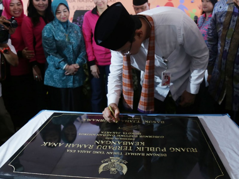 Gubernur DKI Jakarta, Basuki Tjahaja Purnama meresmikan Ruang Publik Terpadu Ramah Anak (RPTRA) Kembangan, di Jalan Kompas RT 07/01, Kelurahan Kembangan Utara, Kecamatan Kembangan, Jakarta Barat, Jumat (05/06/2015). RPTRA Kembangan, selain berfungsi sebagai Ruang Terbuka Hijau (RTH) juga dilengkapi sejumlah fasilitas, diantaranya, fasilitas olahraga, Perpustakaan, ruang menyusui, PAUD dan aula serbaguna.(Foto : Reza/Beritajakarta.com)