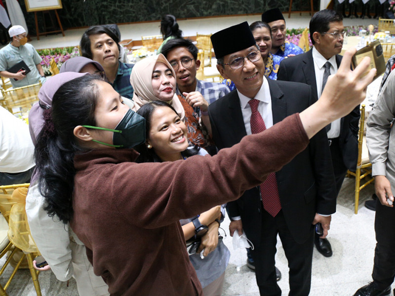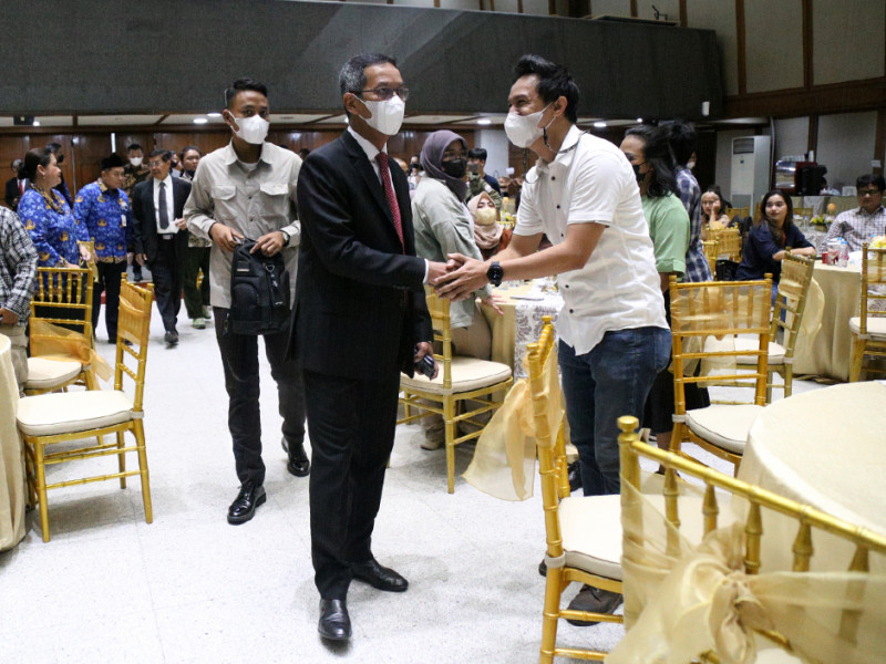 Penjabat (Pj) Gubernur Provinsi DKI Jakarta, Heru Budi Hartono mengundang para wartawan Balai Kota dan DPRD DKI Jakarta (Balkoters) makan bersama di Balai Agung, Jumat (28/10). Acara ini diadakan untuk mempererat tali silaturahmi serta memperkuat sinergisitas antara Pemprov DKI Jakarta dengan wartawan. (Foto: Mochamad Tresna Suheryanto/beritajakarta.id)