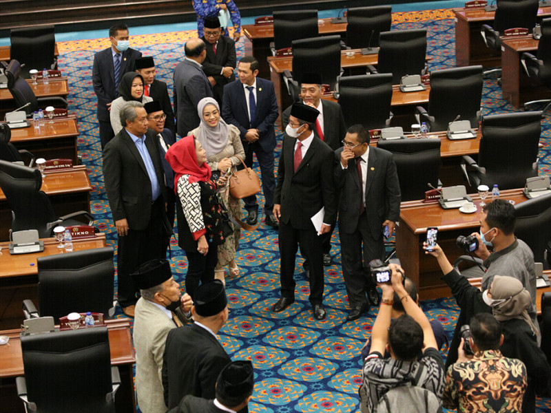 Penjabat Gubernur DKI Jakarta, Heru Budi Hartono menyampaikan jawaban atas Pemandangan Umum Fraksi DPRD terhadap Raperda tentang Pengelolaan Barang Milik Daerah (BMD) dan Perubahan Bentuk Hukum Perseroan Terbatas (PT) menjadi Perseroan Daerah (Perseroda). Hal tersebut disampaikan saat Rapat Paripurna di Gedung DPRD DKI Jakarta, Jumat (28/10). (Foto: Mochamad Tresna Suheryanto/beritajakarta.id)