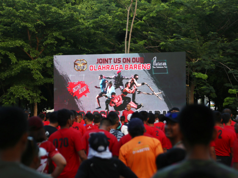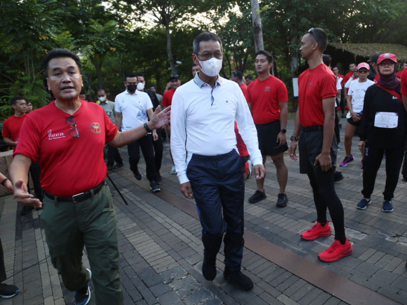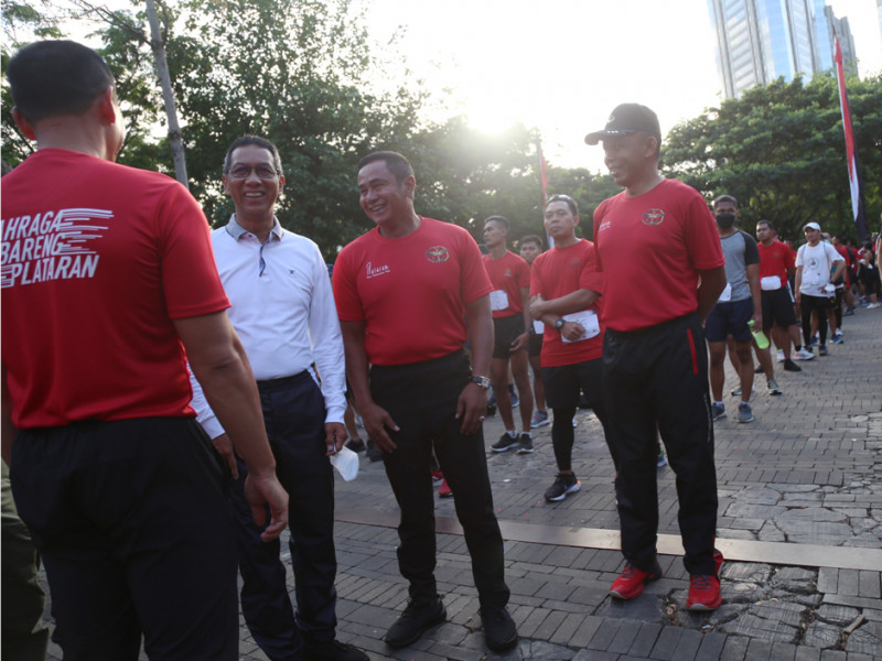 Penjabat (Pj) Gubernur DKI Jakarta, Heru Budi Hartono, melepas peserta lari gembira dan rekreasi bersama jajaran pasukan elit TNI, Kopassus dan masyarakat umum, Sabtu (29/10) pagi. (Foto: Mochamad Tresna Suheryanto/beritajakarta.id)