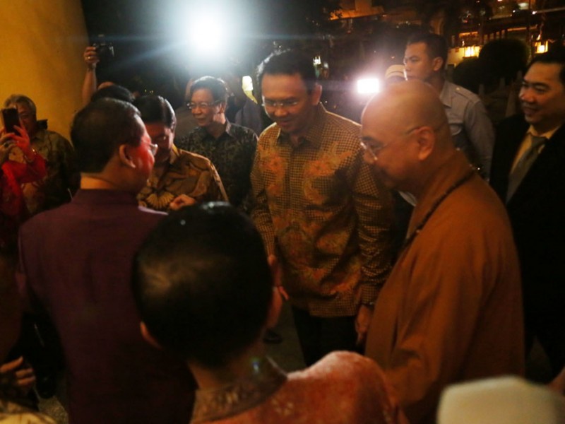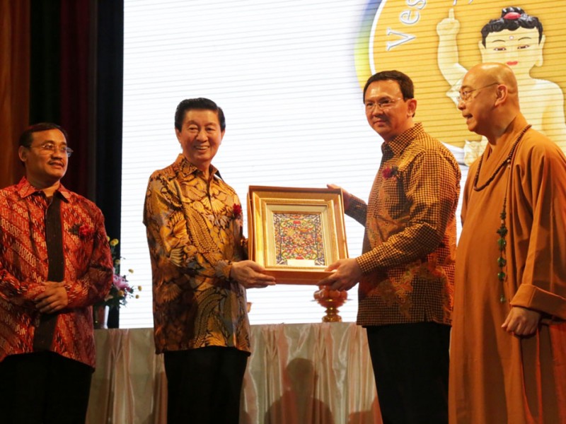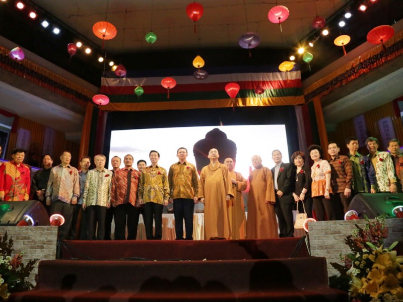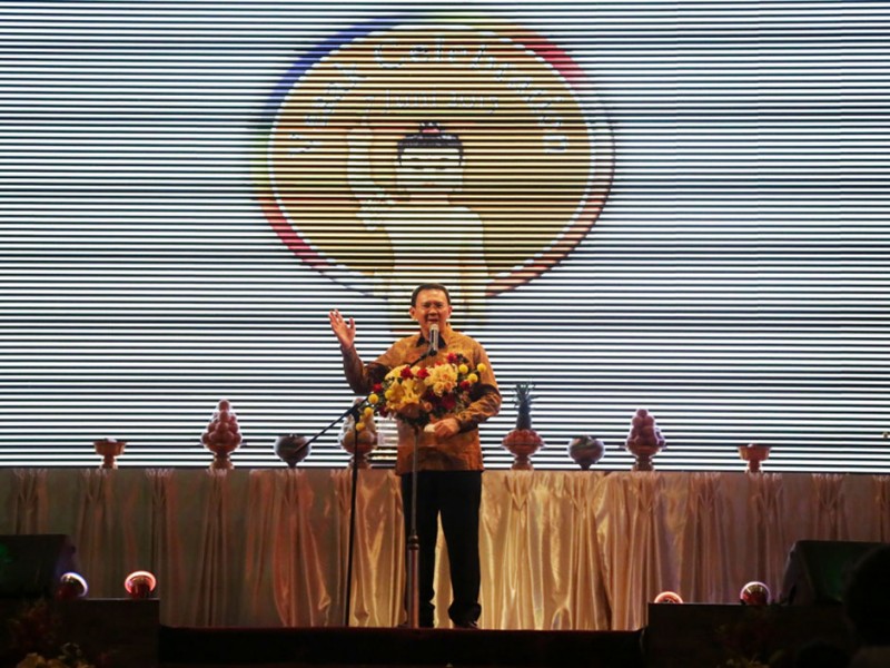 Gubernur DKI Jakarta, Basuki Tjahaja Purnama menghadiri sekaligus memberikan kata sambutan pada perayaan Malam Kesenian Waisak di Auditorium Buddhist Building Indonesia, Vihara Mahavira Graha Pusat, Jalan Lodan Raya, Jakarta Utara, Minggu (07/06/2015) malam. Kehadiran Basuki mendapat sambutan antusias dari umat Buddha yang hadir merayakan Waisak dalam balutan pentas seni budaya. (Foto: Reza/beritajakarta.com)