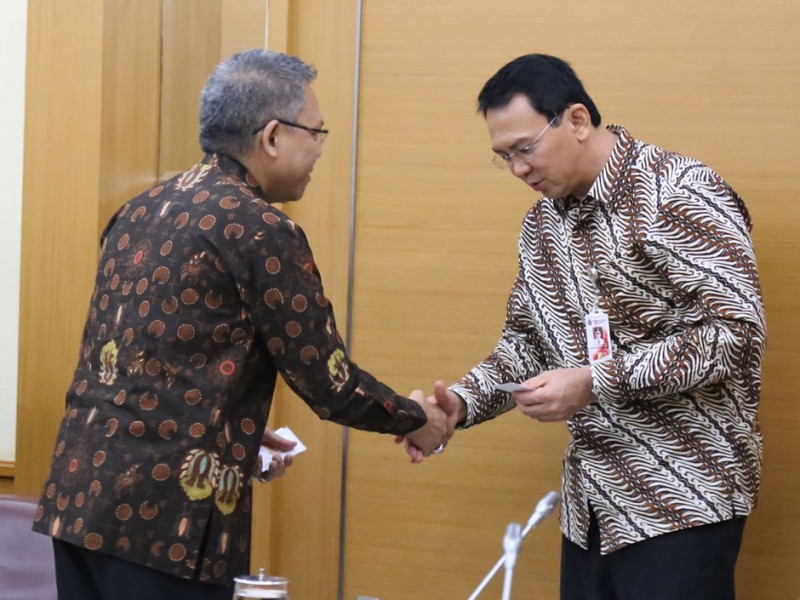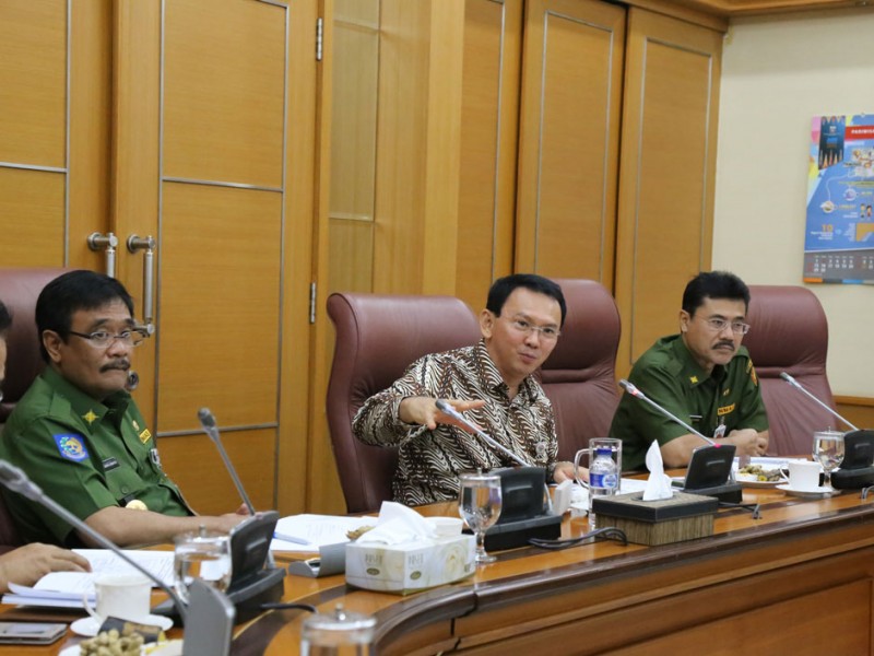 Gubernur DKI Jakarta, Basuki Tjahaja Purnama memimpin rapat rutin bersama jajaran Satuan Kerja Perangkat Daerah (SKPD), BUMD dan stake holder di Balaikota DKI Jakarta, Jalan Medan Merdeka Selatan, Gambir, Jakarta Pusat, Senin (08/06/2015). Dalam rapat kali ini dilakukan pembahsan terkait pembangunan Rumah Susun (Rusun) murah dan pengolahan air. (Foto: Yopie/beritajakarta.com)