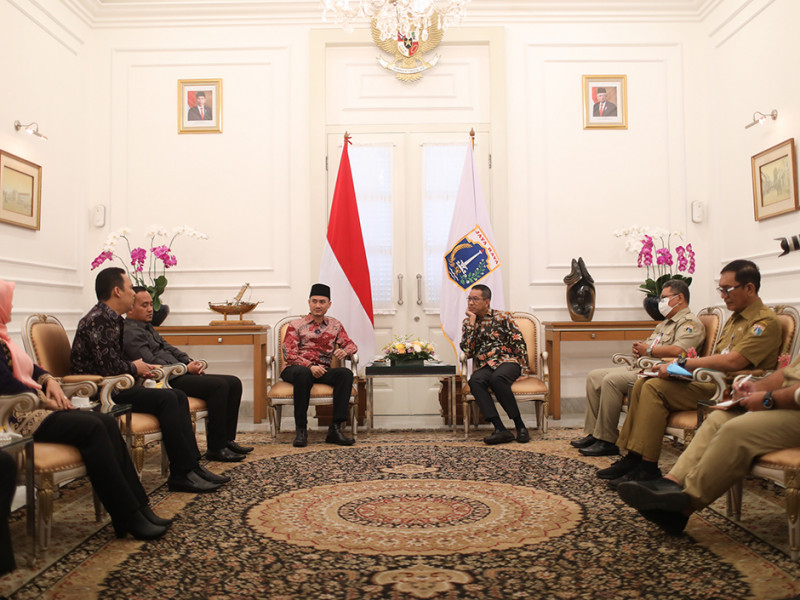 Penjabat (Pj) Gubernur DKI Jakarta, Heru Budi Hartono, menerima kunjungan Badan Pengawas Pemilihan Umum (Bawaslu) Provinsi DKI Jakarta di Balai Kota, Gambir, Jakarta Pusat, Senin (31/10). Pemprov DKI Jakarta siap membantu dan bersinergi dengan Bawaslu untuk menyukseskan pelaksanaan Pemilihan Umum (Pemilu) serentak pada 2024. (Foto: Nugroho Sejati/beritajakarta.id)