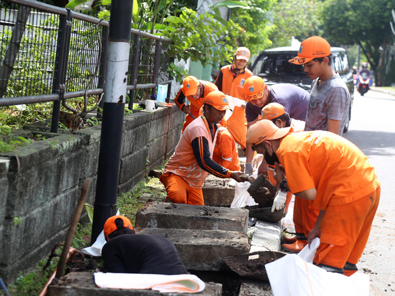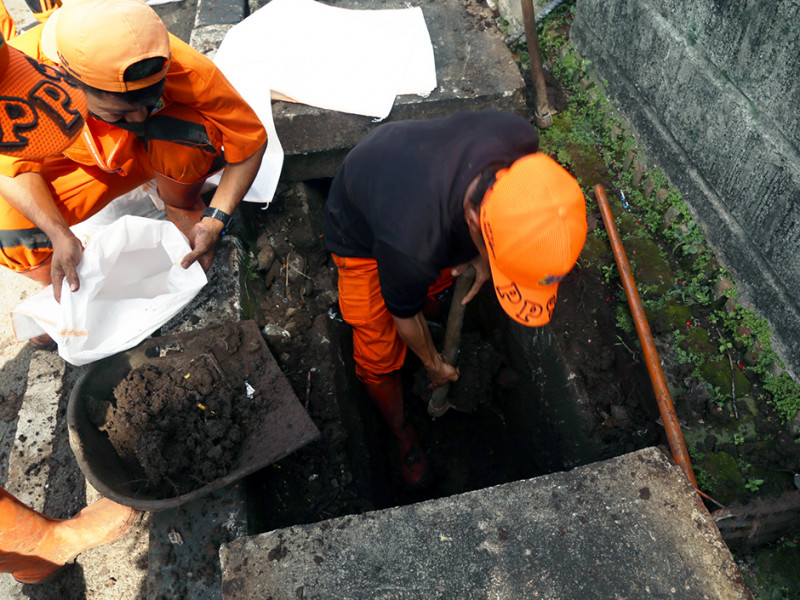 Lumpur saluran air di Jalan Pertanian III, RT 12/04, Kelurahan Pasar Minggu, Kecamatan Pasar Minggu, Jakarta Selatan dikeruk. Kegiatan pengerukan ini guna mengantisipasi terjadinya genangan saat musim hujan. (Foto: Reza Hapiz/beritajakarta.id)
