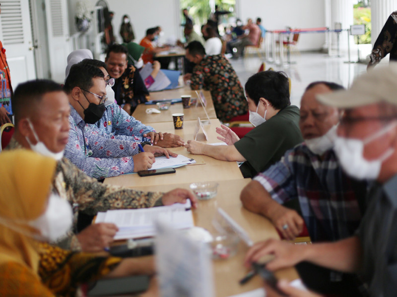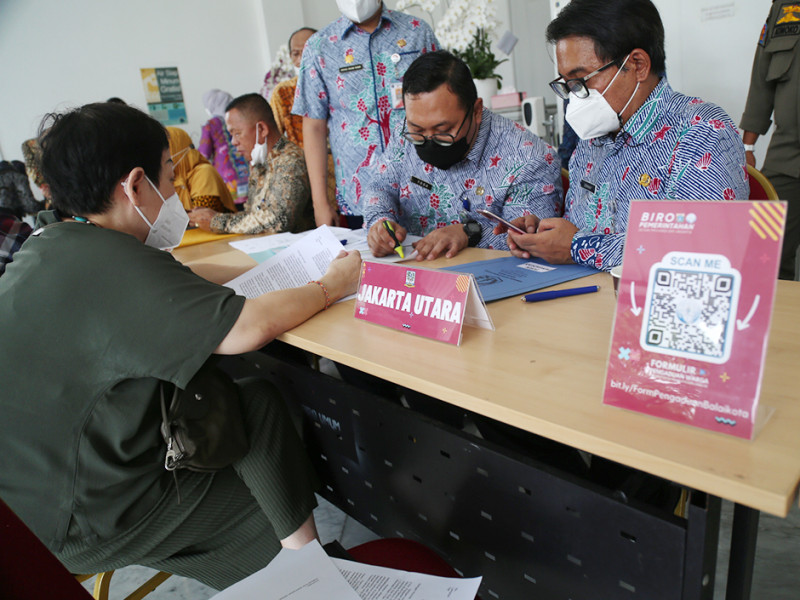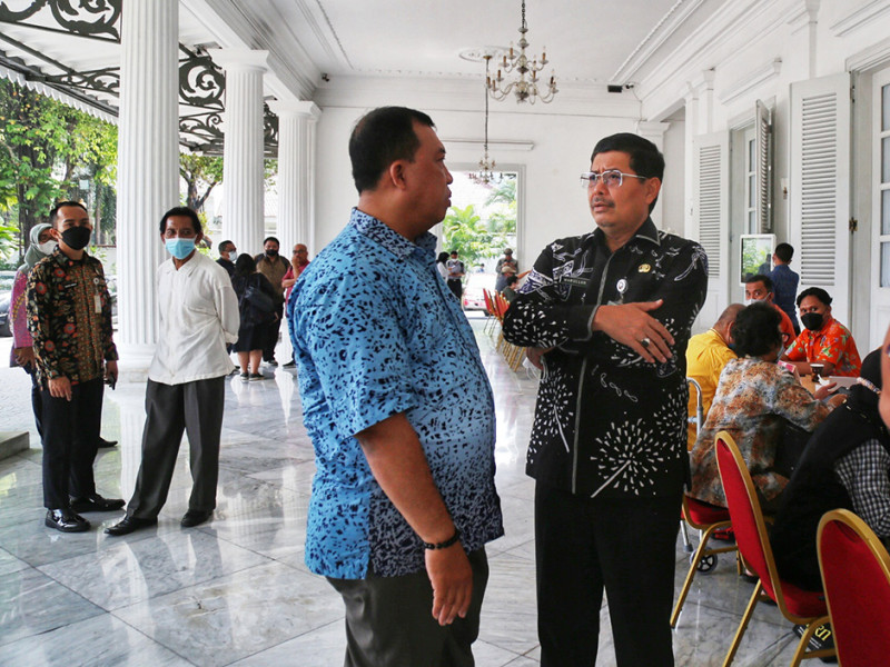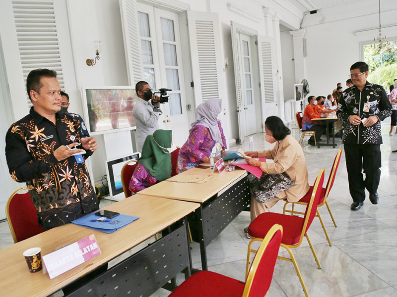 Sekretaris Daerah (Sekda) Provinsi DKI Jakarta, Marullah Matali memonitor langsung layanan aduan masyarakat di Pendopo Balai Kota, Kamis (3/11). Selain meninjau pelaksanaan, Marullah juga mendengarkan langsung aspirasi warga yang datang ke lokasi . (Foto: Mochamad Tresna Suheryanto/beritajakarta.id)