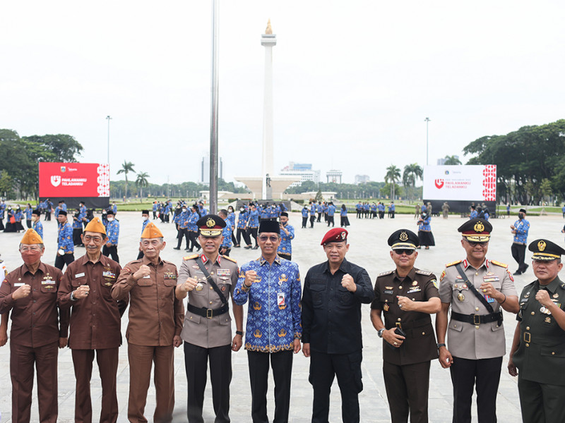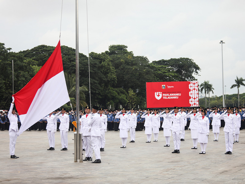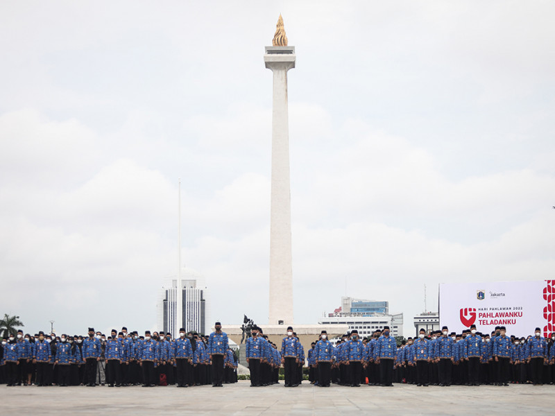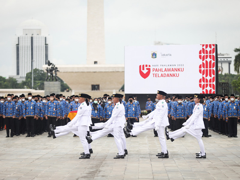 Penjabat (Pj) Gubernur DKI Jakarta, Heru Budi Hartono bertindak sebagai Inspektur Upacara (Irup) memperingati Hari Pahlawan Tingkat Provinsi DKI Jakarta di Plaza Selatan Monumen Nasional, Gambir, Jakarta Pusat, Kamis (10/11). (Foto: Nugroho Sejati/beritajakarta.id)