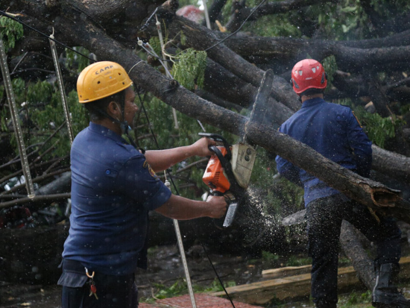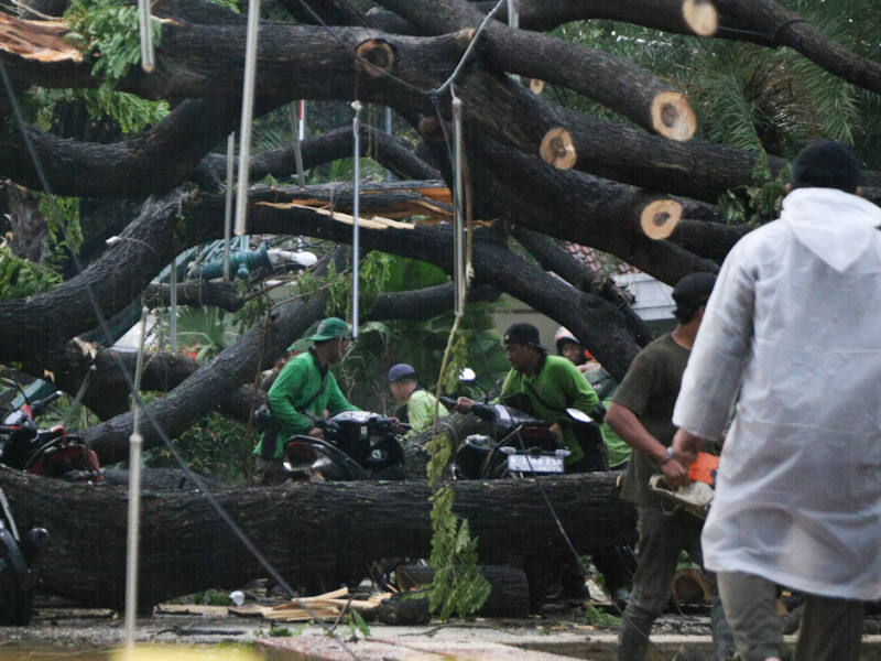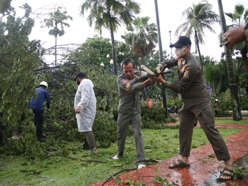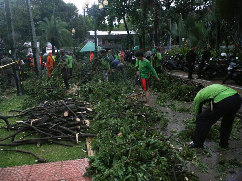 Puluhan Personel Gabungan Tangani Pohon Tumbang di Halaman Balai Kota