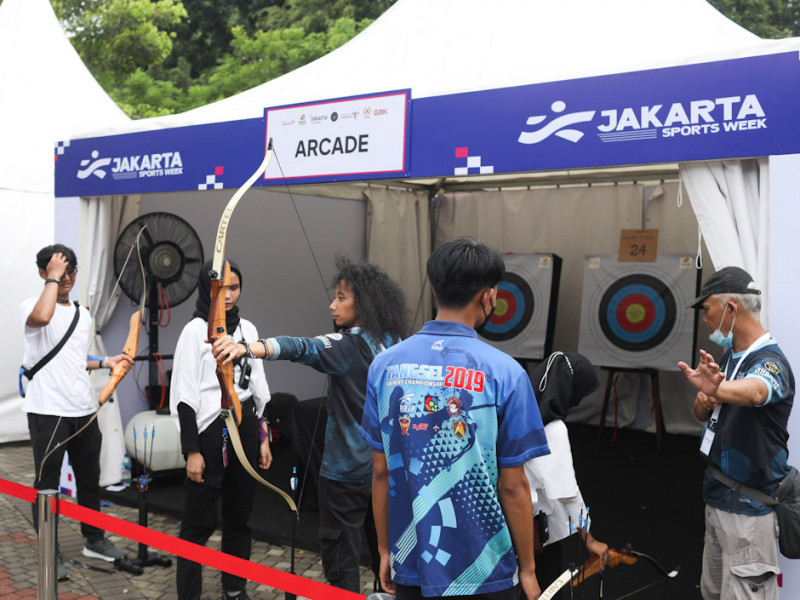 Dinas Pariwisata dan Ekonomi Kreatif (Disparekraf) DKI Jakarta mengadakan acara Jakarta Sports Week (JSW) 2022 di Plaza Timur Stadion GBK, Tanah Abang, Jakarta Pusat. JSW merupakan ajang eksebisi berbagai jenis olahraga untuk dimainkan para pengunjung secara gratis. (Foto: Nugroho Sejati/beritajakarta.id)