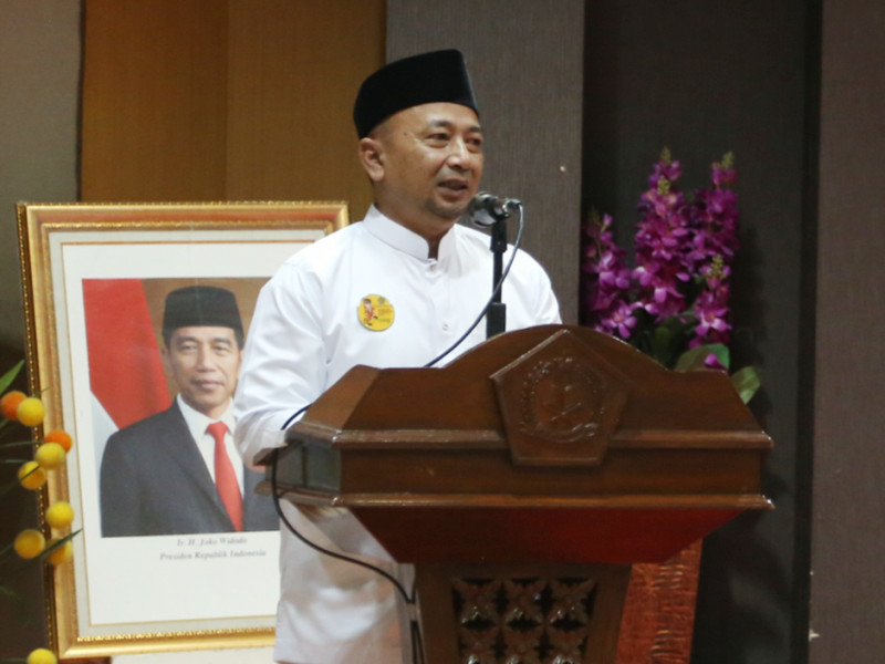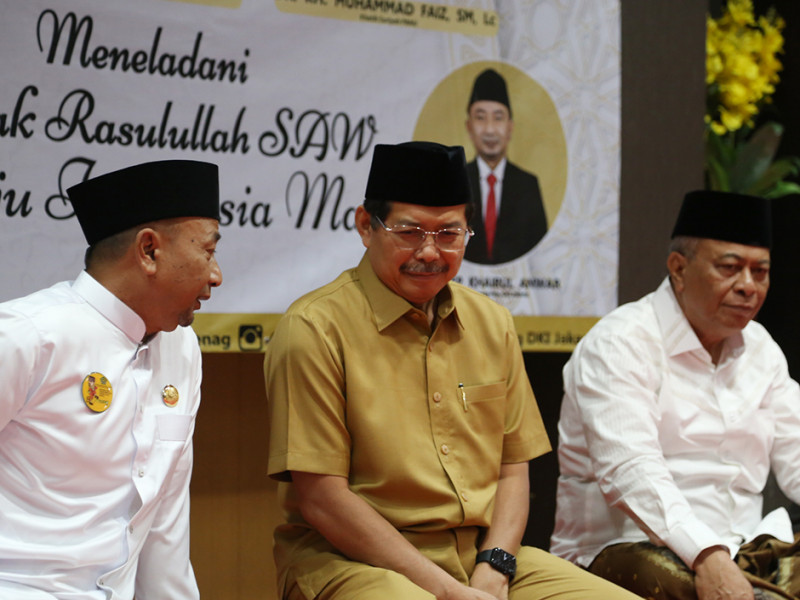 Sekretaris Daerah (Sekda) DKI Jakarta, Marullah Matali menghadiri peringatan Maulid Nabi Muhammad SAW di Kantor Wilayah Kementerian Agama (Kanwil Kemenag) Provinsi DKI Jakarta, Jalan DI Panjaitan, Kelurahan Cipinang Cempedak, Kecamatan Jatinegara, Jakarta Timur, Selasa (15/11). Adapun tema yang diusung dalam peringatan Maulid kali ini adalah \"Meneladani Akhlak Rasulullah SAW Menuju Indonesia Maju\". (Foto: Reza Hapiz/beritajakarta.id)