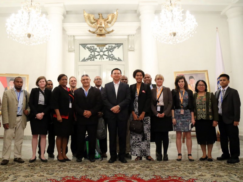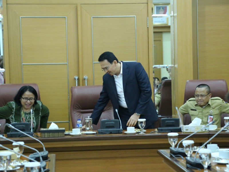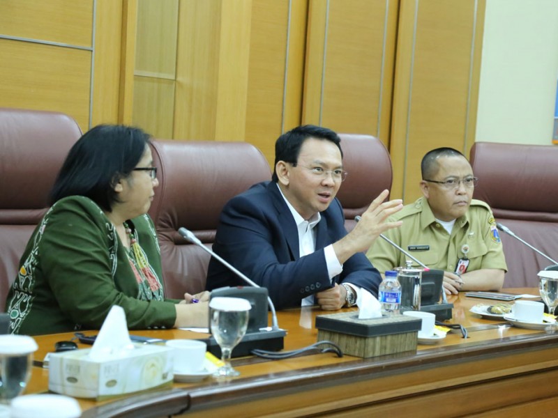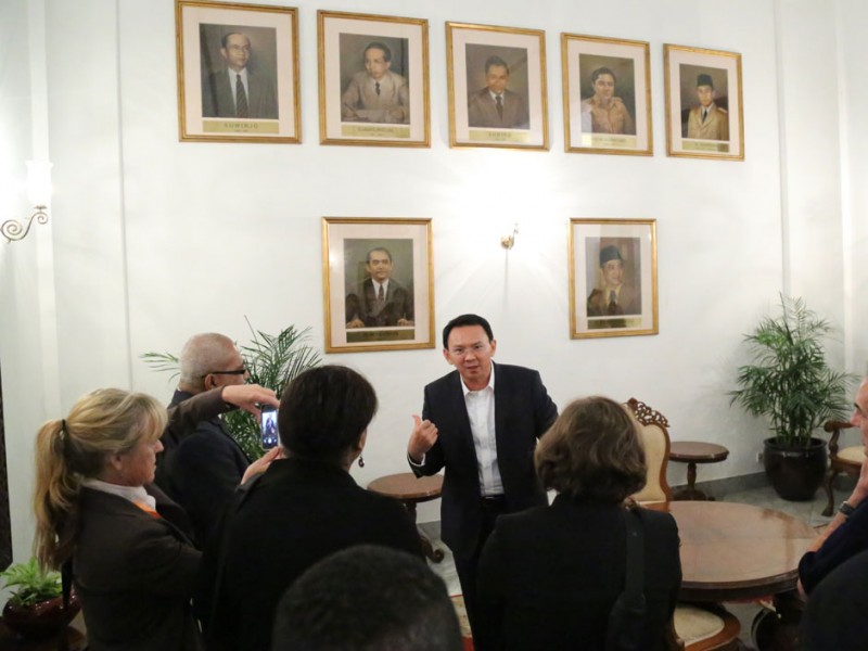 Gubernur DKI Jakarta, Basuki Tjahaja Purnama menerima kunjungan Journalist Visit Program (JVP) dan Bandung Spirit Program (BSP) 2015 yang mana dalam kesempatan ini para peserta ingin mengetahui secara langsung pembangunan dan beberapa program yang sedang dilakukan oleh Pemerintah Provinsi DKI Jakarta. Gedung Balaikota Jakarta, Jakarta Pusat. Rabu (10/6/2015.(Foto: Yopie / Beritaja karta.com)