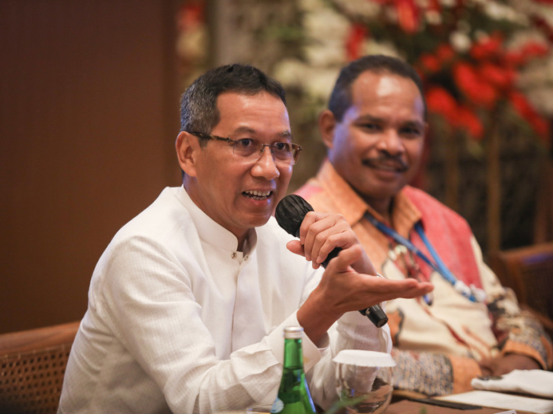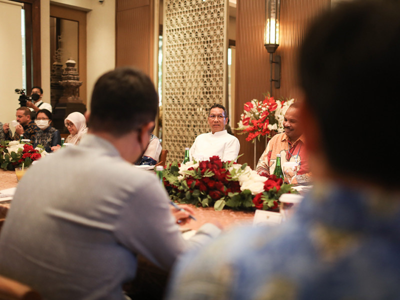 Penjabat (Pj) Gubernur DKI Jakarta, Heru Budi Hartono, menjamu 15 perwakilan mitra organisasi internasional di Plataran Hutan Kota Gelora Bung Karno (GBK), Tanah Abang, Jakarta Pusat, Jumat (18/11). Jamuan tersebut sebagai ajang silaturahmi dan dengar pendapat antara Pemprov DKI Jakarta dan mitra organisasi internasional. (Foto: Nugroho Sejati/beritajakarta.id)