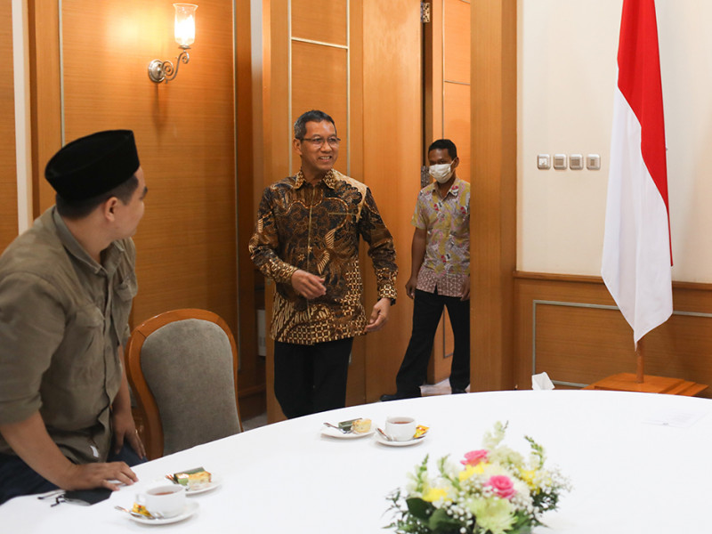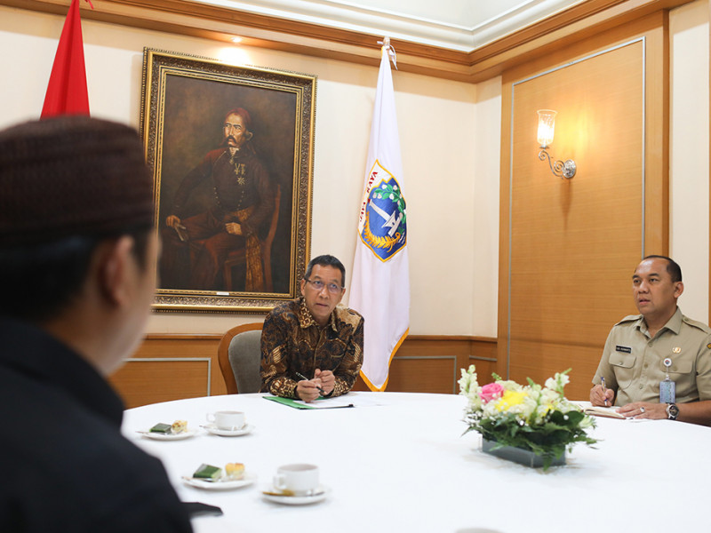 Penjabat (Pj) Gubernur DKI Jakarta, Heru Budi Hartono, menerima audiensi Panitia Pelaksana Kongres XXXIII Himpunan Mahasiswa Islam (HMI) di Balai Kota DKI Jakarta, Gambir, Jakarta Pusat, Selasa (22/11). Pemprov DKI Jakarta mendukung pelaksanaan Kongres XXXIII HMI yang akan digelar di Grand Cempaka Business Hotel pada 17 Desember 2022. (Foto: Nugroho Sejati/beritajakarta.id)