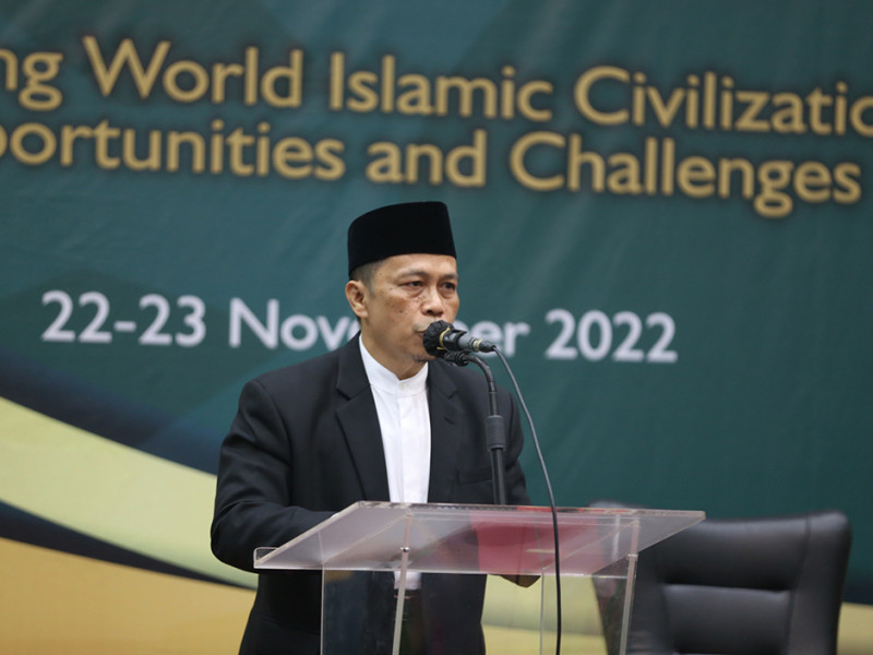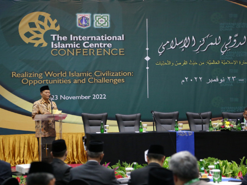 Asisten Kesejahteraan Rakyat (Askesra) Sekdaprov DKI Jakarta, Uus Kuswanto membuka pelaksanaan Konferensi Internasional Islamic Centre di Bidadari Ballroom Hotel Mercure, Ancol, Jakarta Utara, Selasa (22/11). Perhelatan bertajuk \"Realizing World Islamic Civilization: Opportunities and Challenges\" tersebut berlangsung selama dua hari, yakni 22 dan 23 November 2022. (Foto: Reza Hapiz/beritajakarta.id)