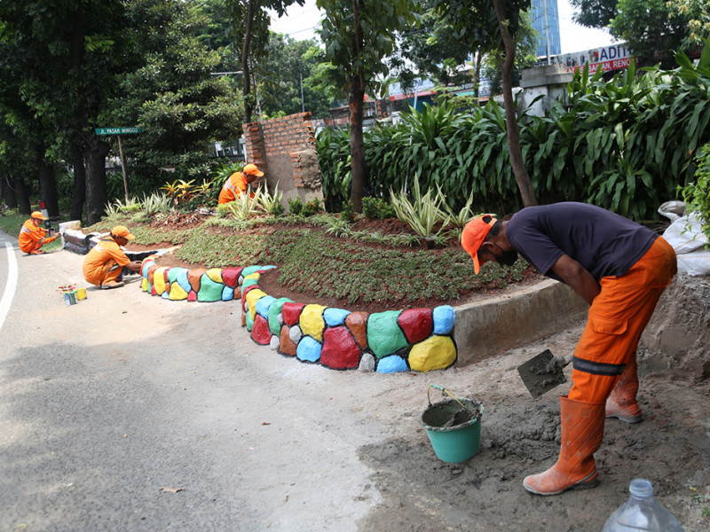 Jalur Hijau di Jalan Raya Pasar Minggu Dipercantik