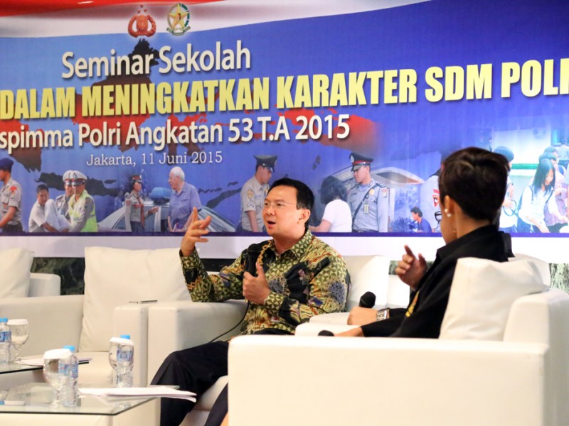 Gubernur DKI Jakarta, Basuki Tjahaja Purnama hadir selaku pembicara dalam Seminar Pasis Sespimma Polri dengan topik “Etika Pejabat Publik yang Diharapkan” Kamis (11/6/2015) . Balaikota Jakarta, Jakarta Pusat. (Foto : Yopie/Beritajakarta.com)