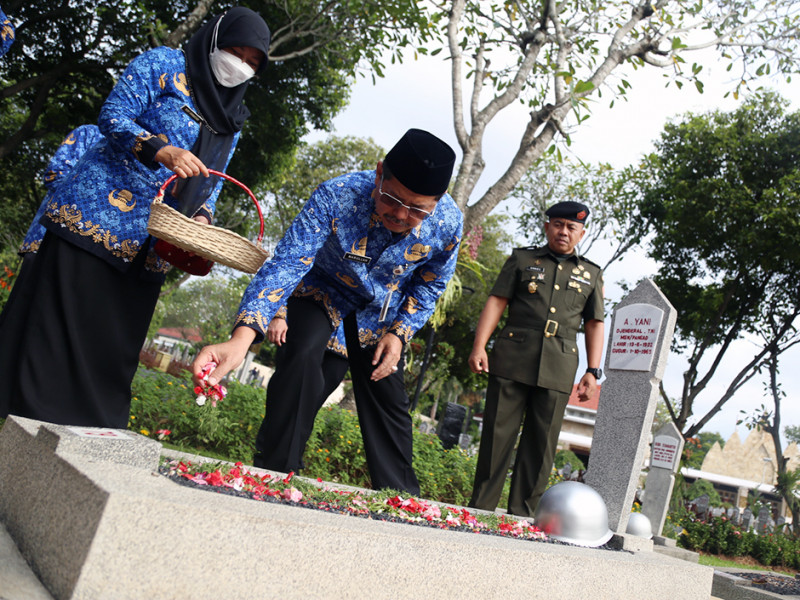 Sekretaris Daerah (Sekda) DKI Jakarta, Marullah Matali memimpin upacara di Taman Makam Pahlawan (TMP) Kalibata, Jakarta Selatan, Kamis (24/11). Upacara digelar dalam rangka memperingati HUT ke-51 Korps Pegawai Republik Indonesia (KORPRI). (Foto: Reza Hapiz/beritajakarta.id)