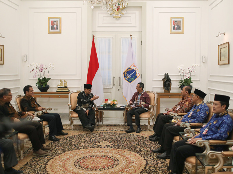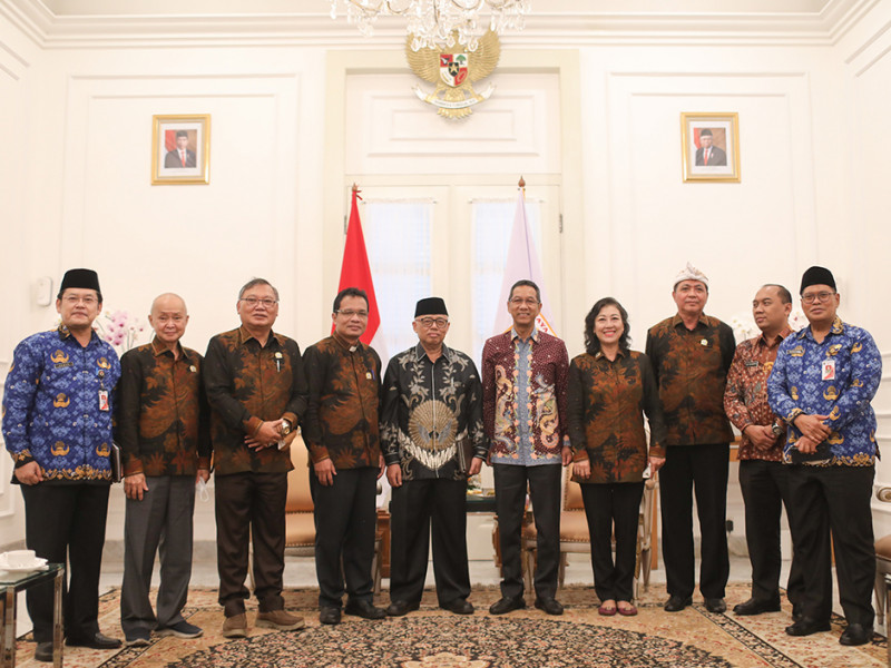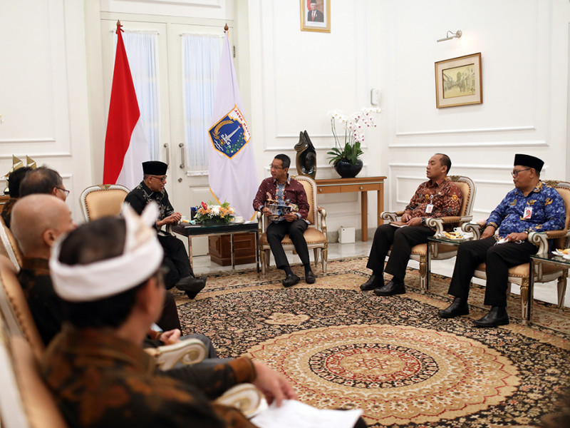 Forum Kerukunan Umat Beragama (FKUB) Provinsi DKI Jakarta melakukan audiensi dengan Penjabat (Pj) Gubernur DKI Jakarta, Heru Budi Hartono, di Ruang Tamu Balai Kota, Gambir, Jakarta Pusat, Kamis (24/11). Dalam pertemuan tersebut, Heru meminta FKUB DKI Jakarta untuk tetap menjaga keharmonisan antar umat beragama. (Foto: Nugroho Sejati/beritajakarta.id)