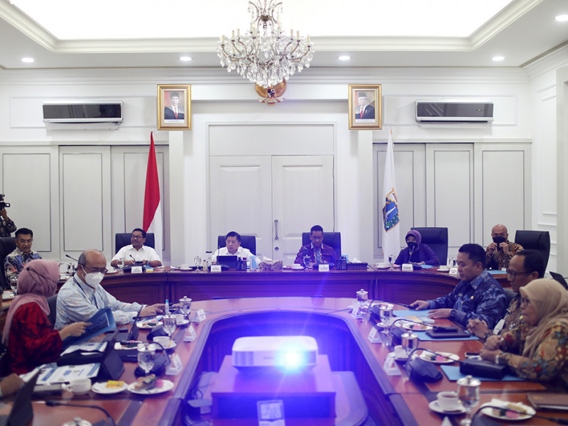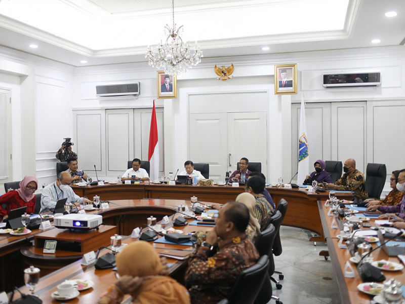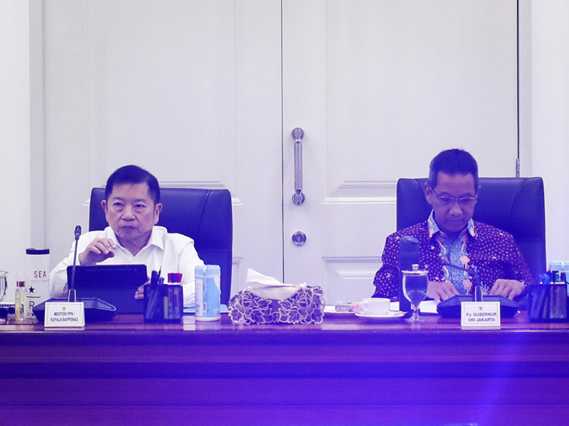 Penjabat (Pj) Gubernur DKI Jakarta, Heru Budi Hartono menggelar pertemuan dengan Menteri Perencanaan Pembangungan Nasional/Kepala Badan Perencanaan Pembangunan Nasional (PPN/Bappenas) RI, Suharso Monoarfa di Ruang Rapat Balai Kota DKI Jakarta, Gambir, Jakarta Pusat, Kamis (24/11). Pertemuan tersebut membahas Jakarta pasca pemindahan Ibu Kota Negara (IKN) ke Kalimantan Timur. (Foto: Nugroho Sejati/beritajakarta.id)