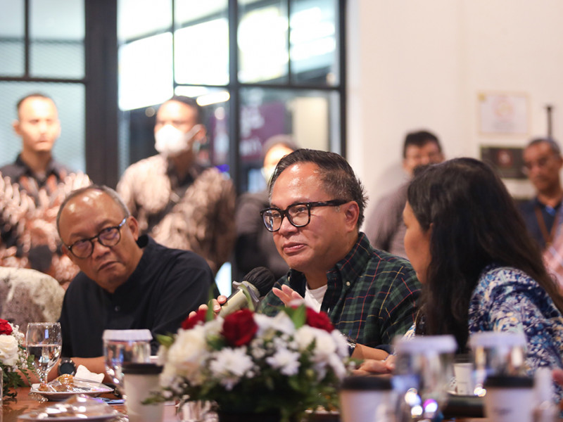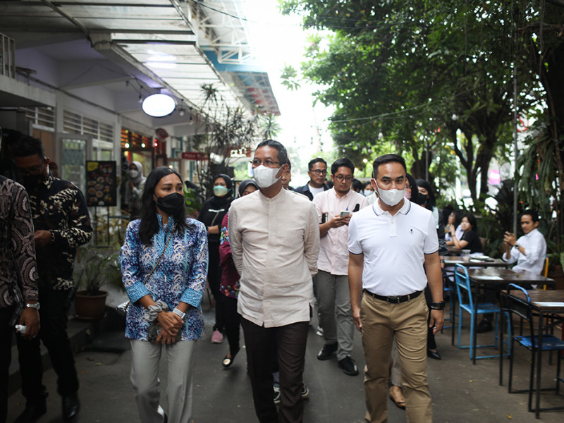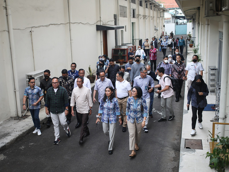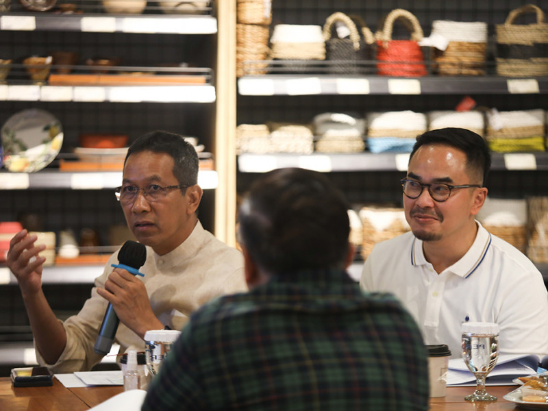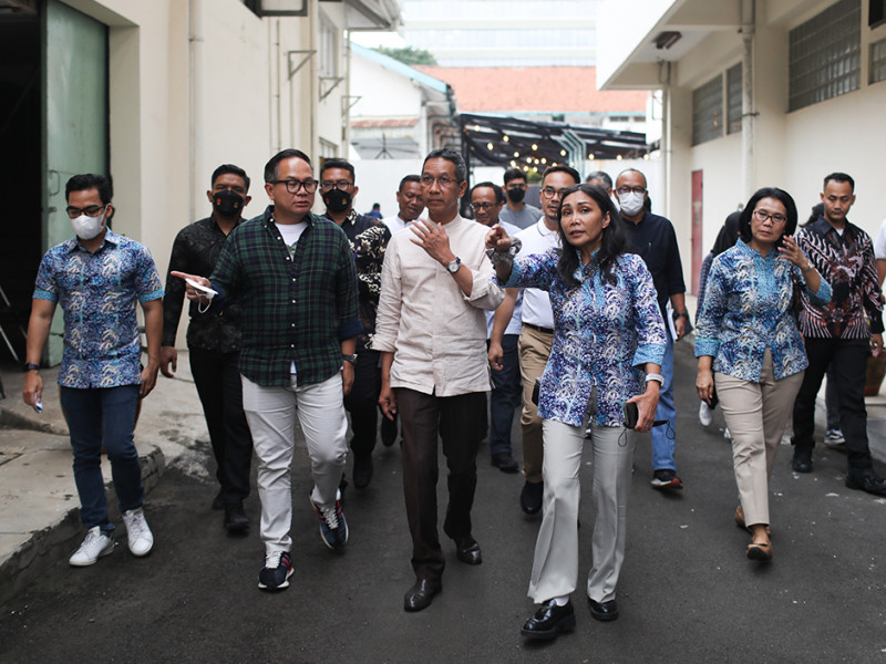 Penjabat (Pj) Gubernur DKI Jakarta, Heru Budi Hartono, menggelar pertemuan bersama Wakil Menteri II Badan Usaha Milik Negara (BUMN), Kartiko Wirjoatmodjo dan Direktur Utama Peruri, Dwina Septiani Wijaya, di M Bloc Space, Kebayoran Baru, Jakarta Selatan, Jumat (25/11). Pertemuan tersebut untuk membahas rencana optimalisasi kawasan M Bloc menjadi pusat aktivitas kreatif Jakarta. (Foto: Nugroho Sejati/beritajakarta.id)