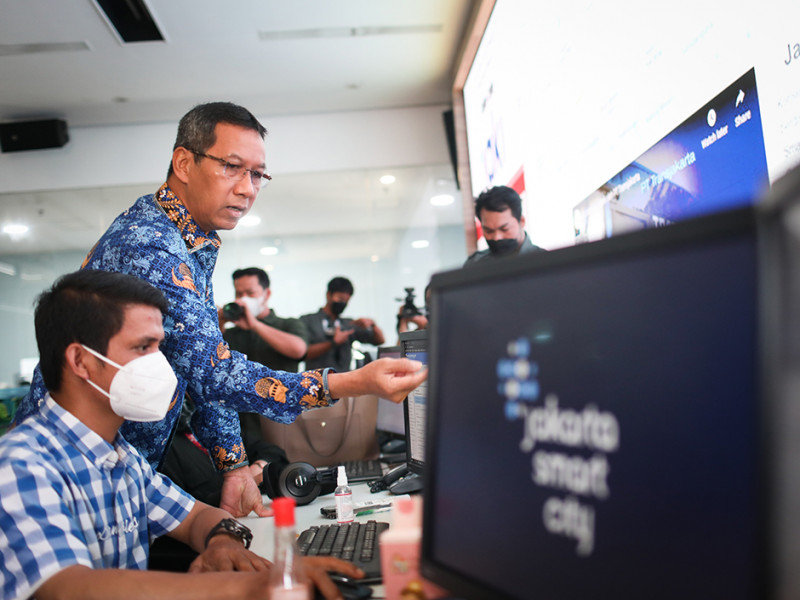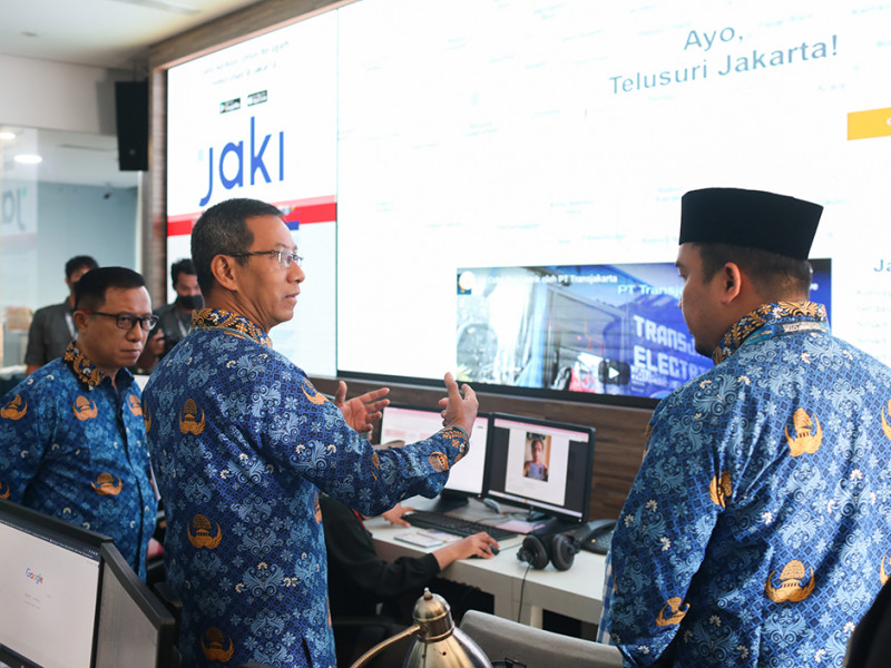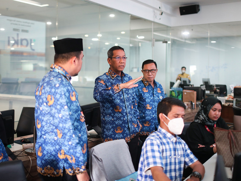 Penjabat (Pj) Gubernur DKI Jakarta, Heru Budi Hartono, melakukan inspeksi mendadak (sidak) ke ruang kerja Jakarta Smart City (JSC) di Gedung B, Balai Kota, Gambir, Jakarta Pusat, Selasa (29/11). Sidak tersebut untuk memastikan teknis pengelolaan di JSC berjalan dengan baik dan bermanfaat untuk masyarakat Jakarta. (Foto: Nugroho Sejati/beritajakarta.id)