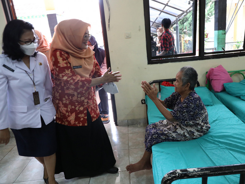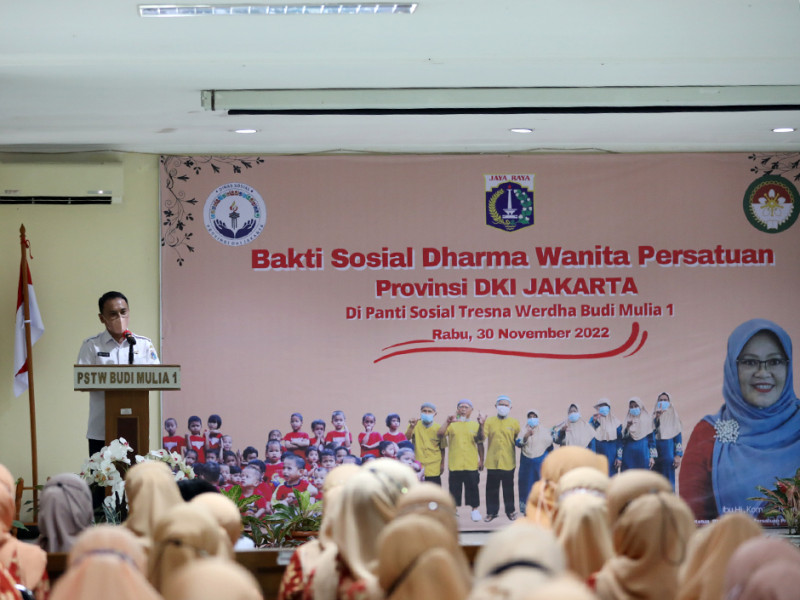 Dharma Wanita Persatuan (DWP) Provinsi DKI Jakarta mengadakan kegiatan bakti sosial (Baksos) di Panti Sosial Tresna Werdha (PSTW) Budi Mulia I, Jalan Bina Marga, Cipayung, Jakarta Timur, Rabu (30/11). Selain memberikan bantuan, kedatangan para pengurus dan anggota DWP sekaligus untuk menghibur warga panti. (Foto: Reza Hapiz/beritajakarta.id)