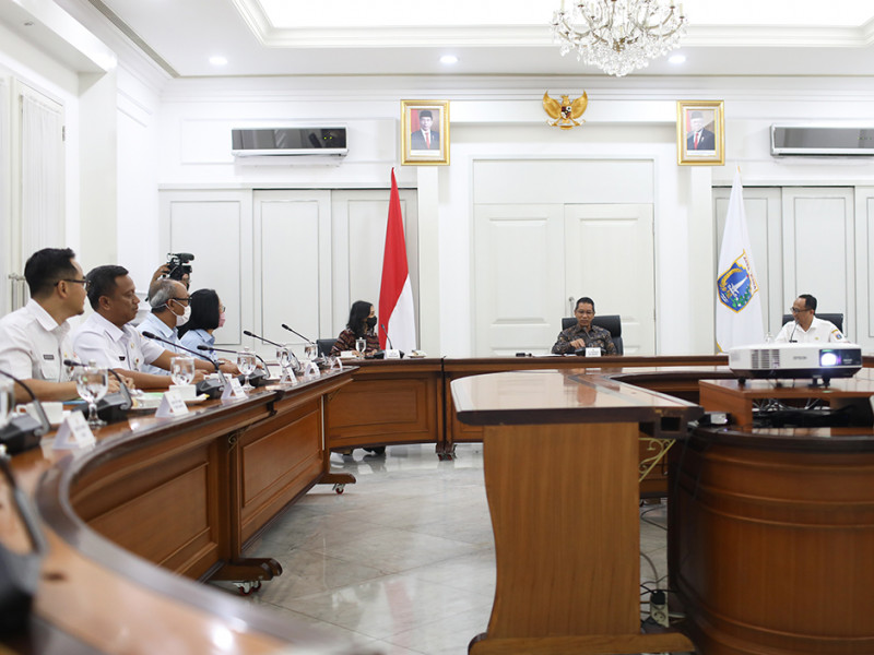 Penjabat (Pj) Gubernur DKI Jakarta, Heru Budi Hartono, memimpin rapat penataan kawasan Perum Percetakan Uang Republik Indonesia (Peruri) Blok M di Ruang Rapim Balai Kota, Gambir, Jakarta Pusat, Rabu (30/11). Kawasan Perum Peruri (M Bloc Space) akan dioptimalisasi sebagai pusat aktivitas kreatif di Jakarta. (Foto: Nugroho Sejati/beritajakarta.id)