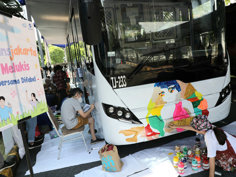 Transjakarta Ajak 15 Anak Penyandang Disabilitas Melukis Bus