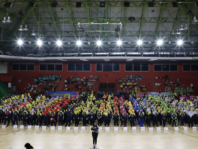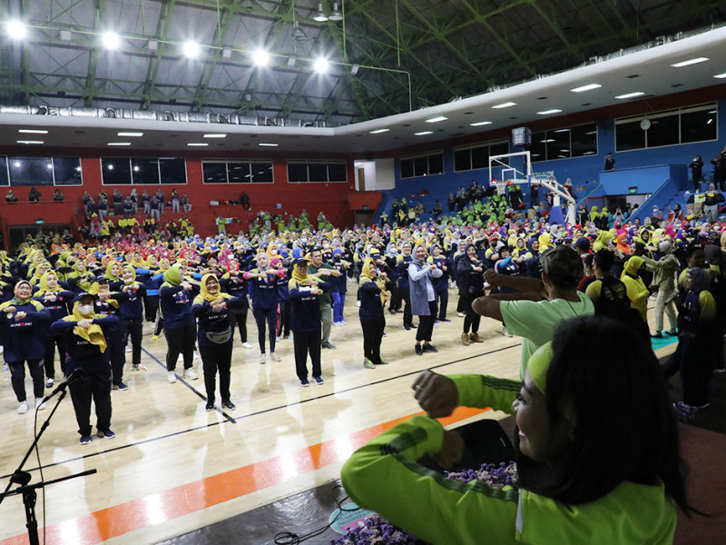 Dharma Wanita Persatuan (DWP) Provinsi DKI Jakarta bekerja sama dengan Dinas Pemuda dan Olahraga (Dispora) DKI Jakarta, Selasa (6/12), menyelenggarakan Pekan Olahraga (POR) Wanita. Kegiatan yang berlangsung di Gelanggang Mahasiswa Soemantri Brojonegoro (Pasar Festival), Kuningan, Jakarta Selatan ini diikuti sebanyak 800 peserta. (Foto: Mochamad Tresna Suheryanto/beritajakarta.id)