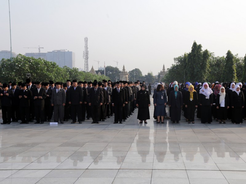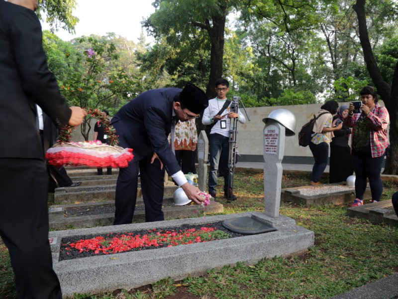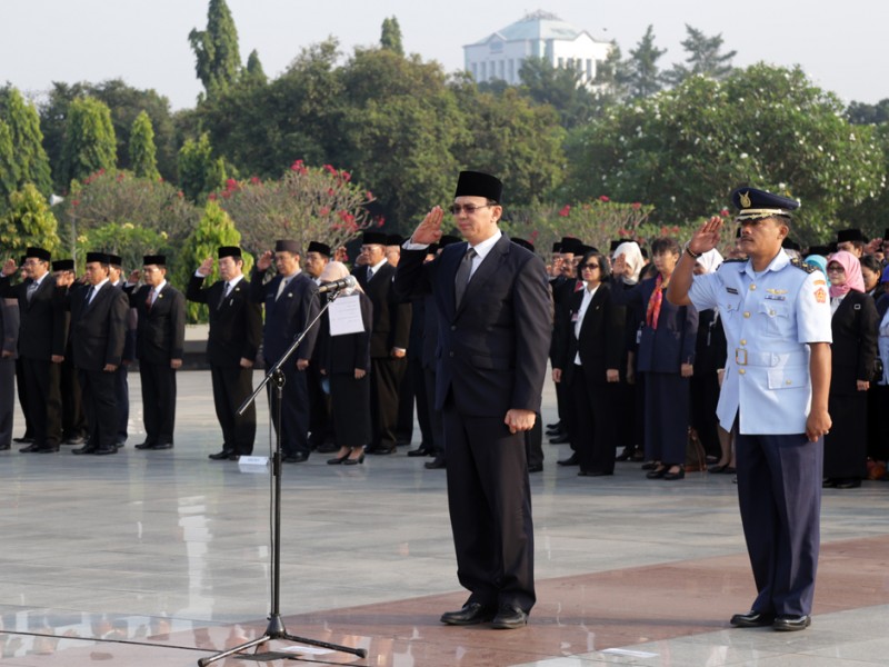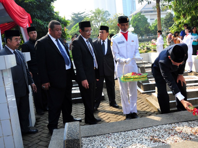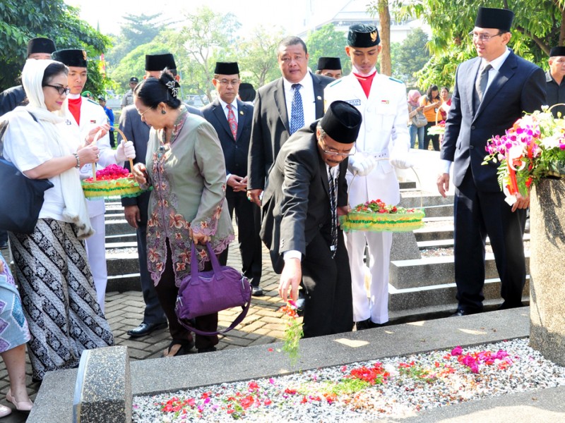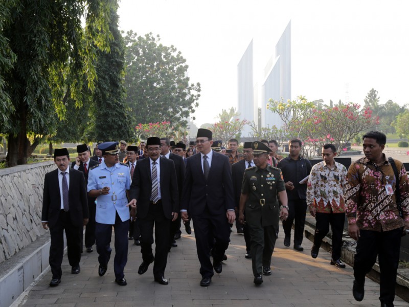 Gubernur DKI Jakarta Basuki Tjahaja Purnama bersama Wakil Gubernur DKI Jakarta Djarot Saiful Hidayat dan pejabat di lingkungan Pemerintah Provinsi (Pemprov) DKI Jakarta melakukan ziarah ke Taman Makam Pahlawan Kalibata, Jakarta Selatan dan TPU Karet Bivak, Jakarta Pusat, Selasa (16/06/2015). Ziarah dilakukan sekaligus sebagai napak tilas dan mengenang jasa para pahlawan dan pemimpin Kota Jakarta terdahulu jelang peringatan HUT ke-488 Kota Jakarta. (Foto : Reza/Beritajakarta.com)