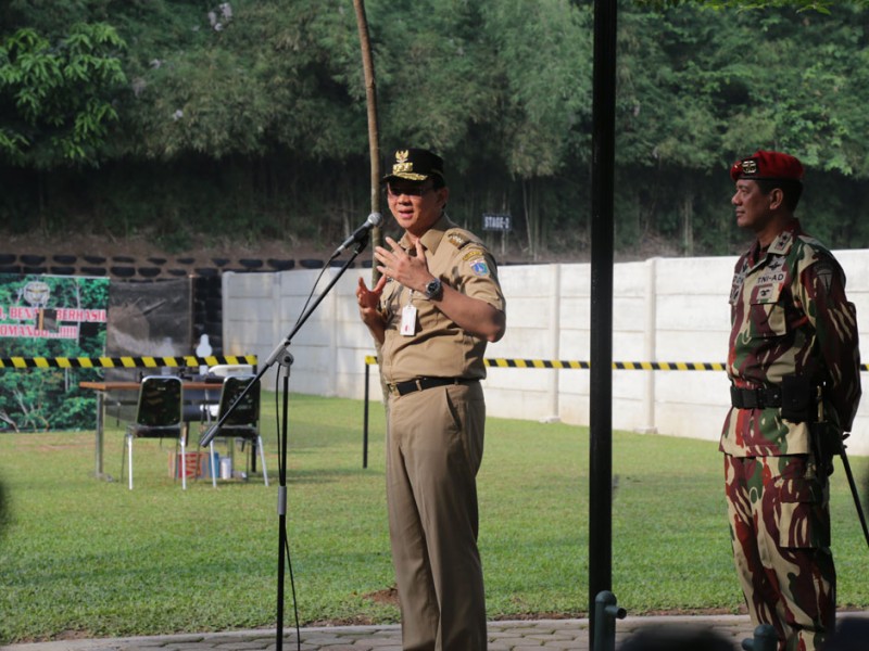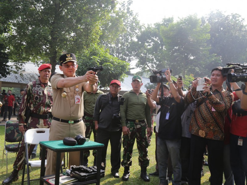 Gubernur DKI Jakarta, Basuki Tjahaja Purnama terbukti mahir menembak. Hal ini dibuktikan Basuki dengan mampu membidik sasaran dengan tepat saat melakukan aksi menembak, usai melakukan apel sinergi 3 pilar dari unsur Pemprov DKI Jakarta, TNI dan POLRI sekaligus peresmian lapangan tembak International Particullar Shooting Club (IPSC) di Markas Komando Pasukan Khusus (Makopasus), Cijantung, Jakarta Timur, Rabu (17/06/2015).(Foto: Reza / Beritajakarta.com)