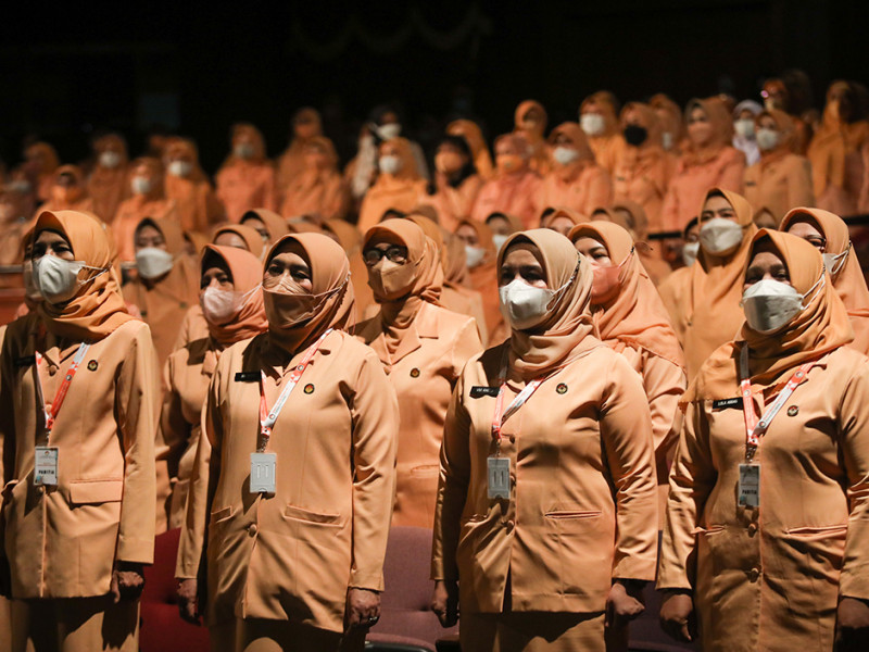 Dharma Wanita Persatuan (DWP) Provinsi DKI Jakarta menggelar acara peringatan HUT ke-23 di Teater Besar, Pusat Kesenian Jakarta Taman Ismail Marzuki (TIM), Menteng, Jakarta Pusat, Rabu (14/12). Deputi Gubernur DKI Jakarta Bidang Budaya dan Pariwisata DKI Jakarta, Marullah Matali meminta DWP bisa terus menjaga eksistensi. (Foto: Nugroho Sejati/beritajakarta.id)