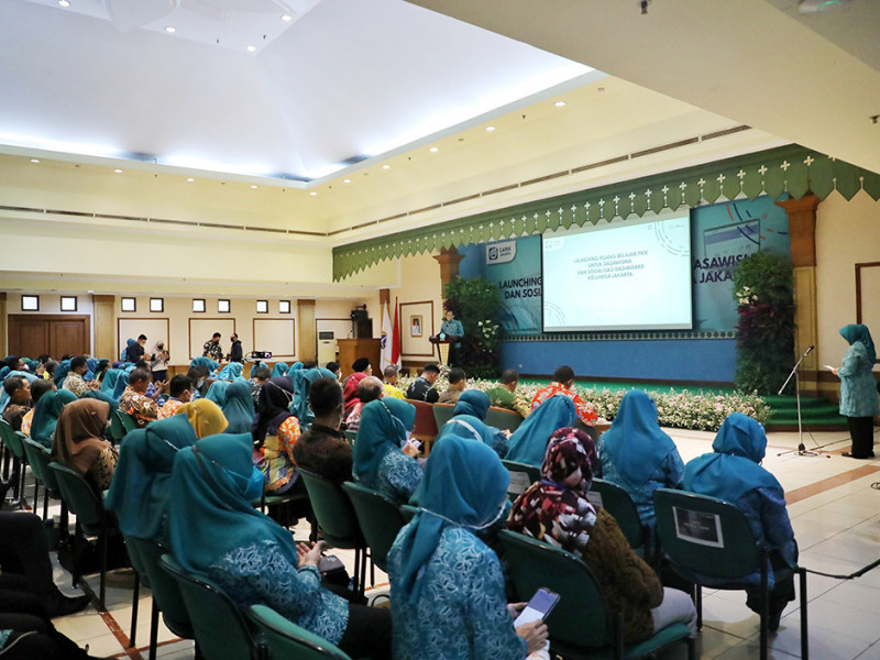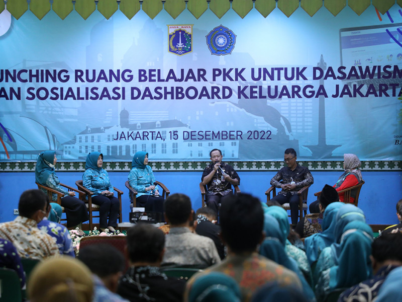 Tim Penggerak Pemberdayaan Kesejahteraan Keluarga (TP PKK) bersama Dinas Pemberdayaan Perlindungan Anak dan Pengendalian Penduduk (PPAPP) DKI Jakarta melakukan peluncuran Ruang Belajar untuk Dasawisma dan Sosialisasi Dashboard Keluarga Jakarta. Acara peluncuran tersebut digelar secara hybrid di Auditorium Gedung PKK Melati Jaya Jalan Kebagusan Raya, Pasar Minggu, Jakarta Selatan, Kamis (15/12). (Foto: Mochamad Tresna Suheryanto/beritajakarta.id)