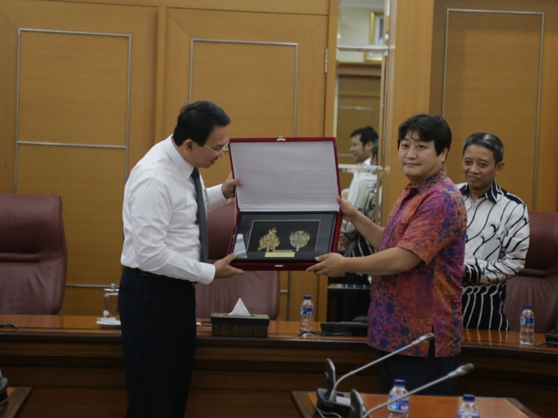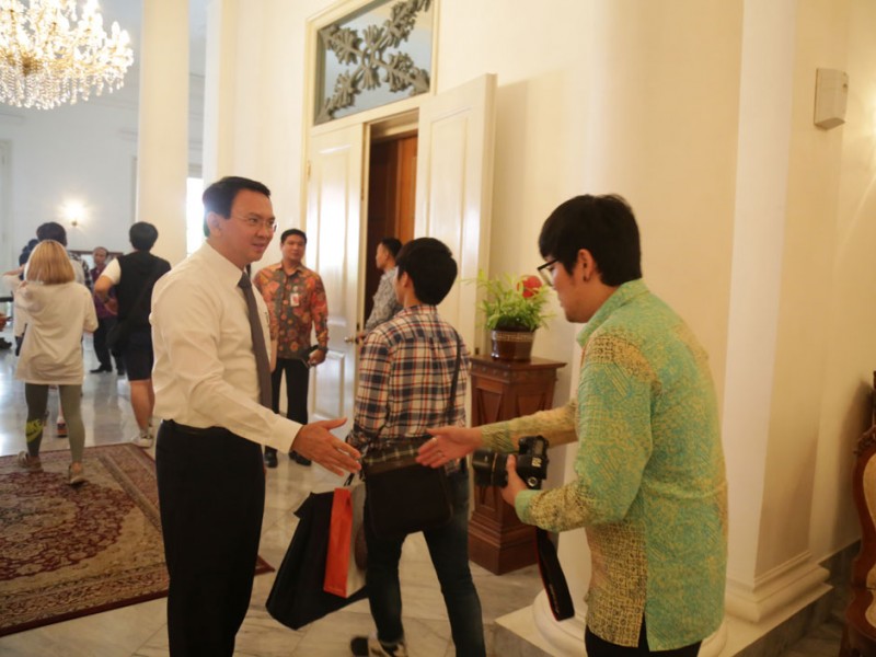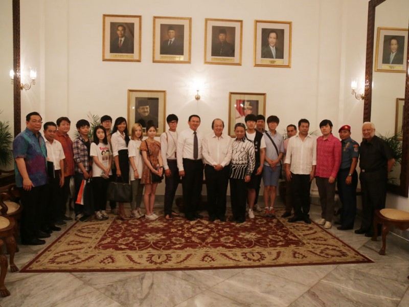 Gubernur DKI Jakarta, Basuki Tjahaja Purnama menerima kunjungan P elajar dari Korea di Balaikota DKI Jakarta (18/06/2015). Dalam kunjungan ini para Pelajar mengemukaan ketertarikan dengan Taman Marga Satwa Ragunan (TMR) yang dimiliki oleh DKI Jakarta.