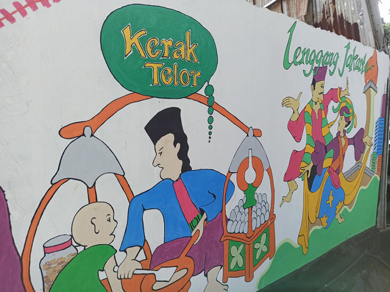 Jalan Manunggal, RT 08/04, Kelurahan Lebak Bulus, Cilandak, Jakarta Selatan kini tampak cantik dengan hadirnya mural. Penataan kawasan tersebut dikerjakan oleh Petugas Penanganan Prasarana dan Sarana Umum (PPSU) kelurahan setempat. (Foto: Reza Hapiz/beritajakarta.id)