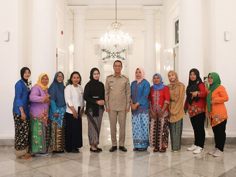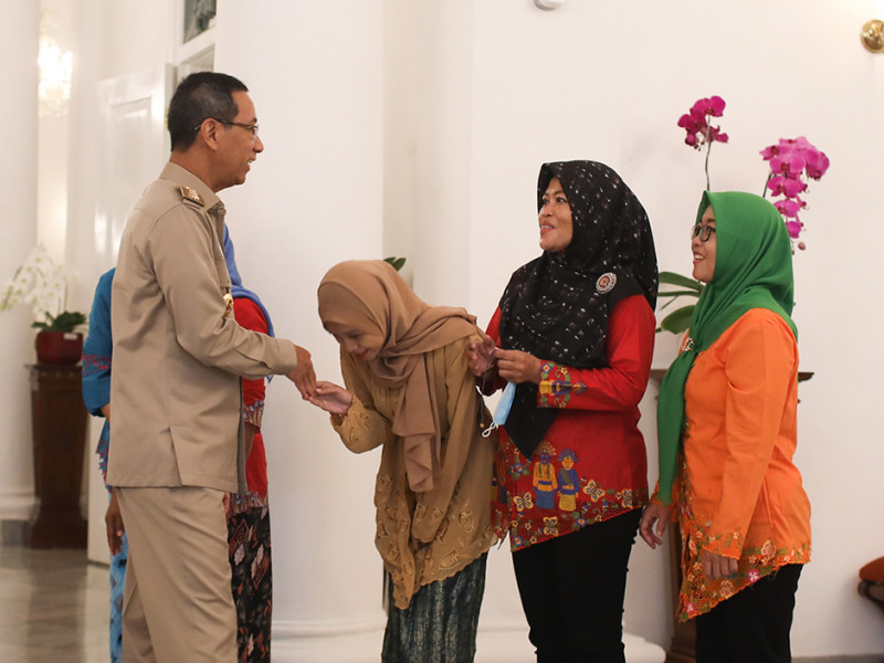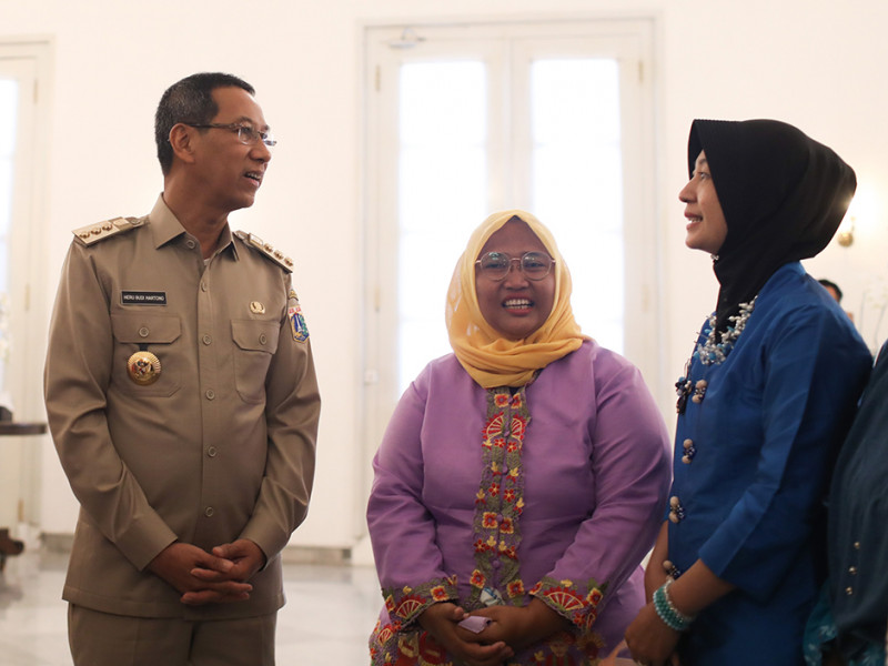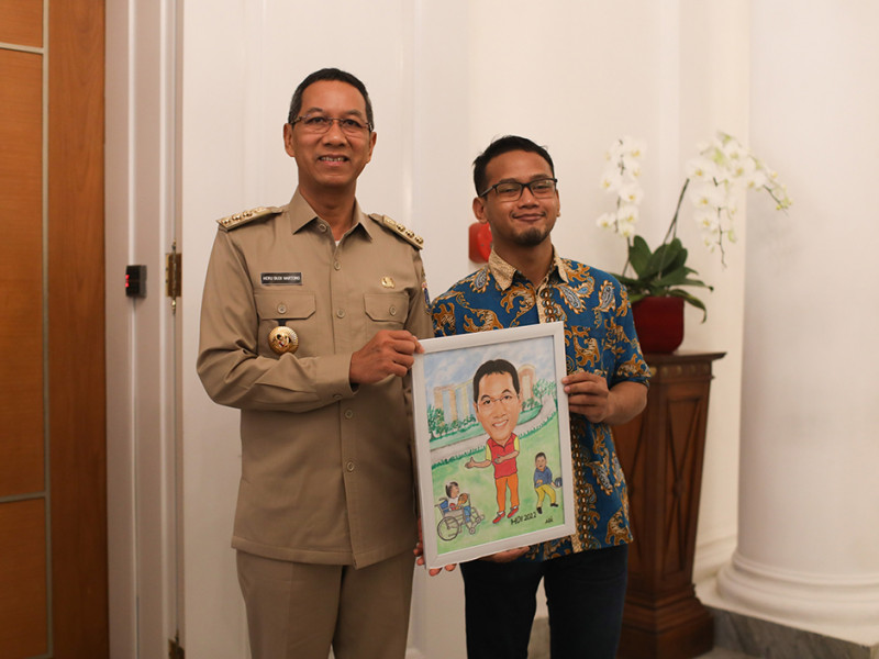 Sejumlah pelaku UMKM, ibu-ibu nelayan dan penghuni Rusun Marunda, serta penyandang disabilitas menemui Penjabat (Pj) Gubernur DKI Jakarta, Heru Budi Hartono di Balai Kota, Gambir, Jakarta Pusat, Kamis (22/12). Dalam pertemuan tersebut, Heru berdiskusi, melakukan foto bersama dan menerima lukisan karikatur karya penyandang disabilitas. (Foto: Nugroho Sejati/beritajakarta.id)