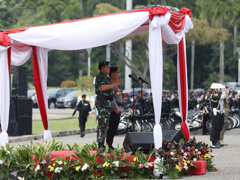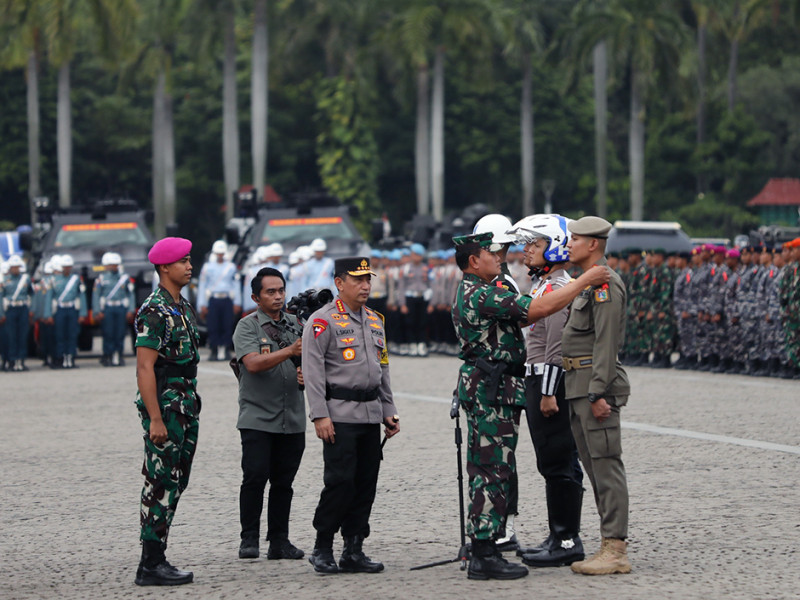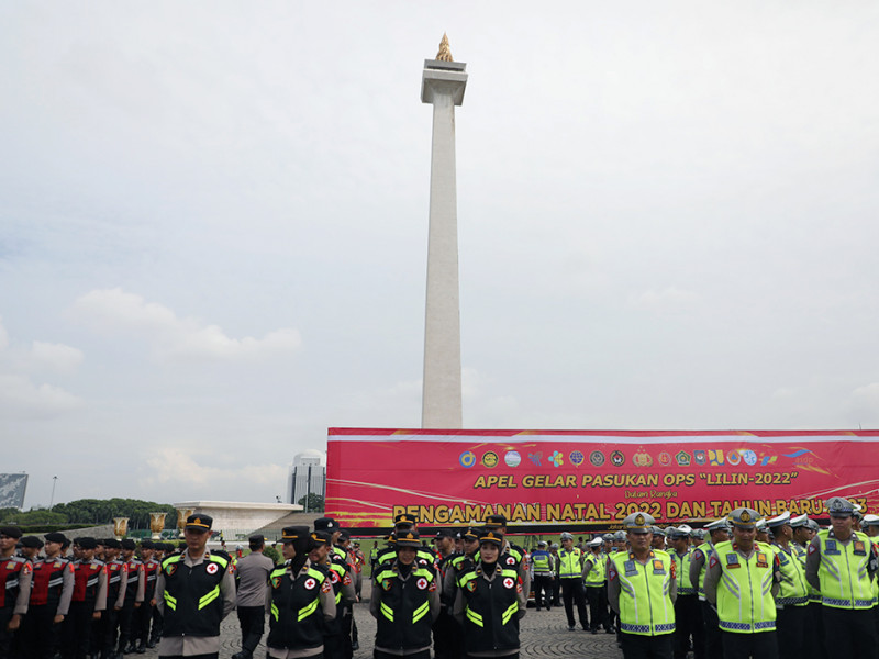 Pejabat (Pj) Gubernur DKI Jakarta, Heru Budi Hartono menghadiri Apel Gelar Pasukan Operasi Kepolisian Terpusat \"Lilin Jaya 2022\" di Lapangan Cawan Selatan Monas, Jakarta, Kamis (22/12). Operasi ini sebagai upaya bersama dari seluruh pemangku kepentingan guna memberikan rasa aman dan tenteram bagi masyarakat menjelang maupun saat merayakan Natal serta Tahun Baru di Jakarta. (Foto: Mochamad Tresna Suheryanto/beritajakarta.id)