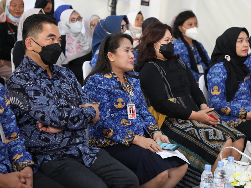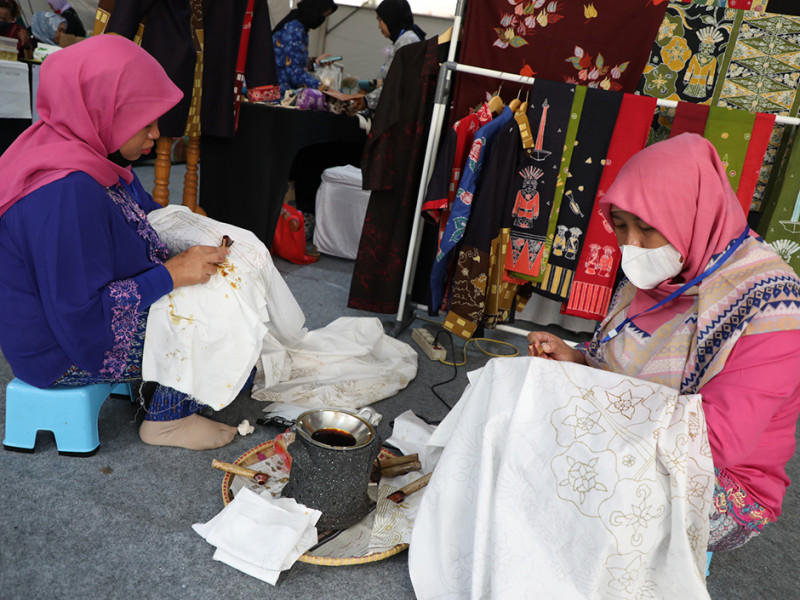 Bertepatan dengan peringatan Hari Ibu ke-94, Dinas Perindustrian, Perdagangan, Koperasi, Usaha Kecil dan Menengah (PPKUKM) DKI Jakarta menggelar workshop membatik dan bazar di Halaman Kantor Kecamatan Cilincing, Jakarta Utara, Kamis (22/11). Peringatan Hari Ibu melalui kegiatan pemberdayaan ekonomi perempuan ini diharapkan menjadi momentum peningkatan peran ibu dalam menopang ekonomi keluarga melalui UMKM. (Foto: Reza Hapiz/beritajakarta.id)