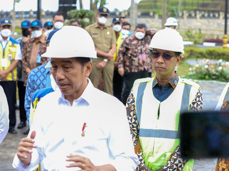 Penjabat (Pj) Gubernur DKI Jakarta, Heru Budi Hartono menghadiri peresmian Bendungan Ciawi dan Bendungan Sukamahi di Kabupaten Bogor, Jawa Barat, Jumat (23/12). Waduk kering atau dry dam pertama di Indonesia tersebut diresmikan langsung Presiden Joko Widodo disaksikan Menteri Pekerjaan Umum dan Perumahan Rakyat (PUPR) RI, Basuki Hadimuljono; Menteri Agraria dan Tata Ruang RI/Kepala Badan Pertanahan Nasional (ATR/BPN), Hadi Tjahjanto; Gubernur Jawa Barat, Ridwal Kamil; dan Plt Bupati Bogor, Iwan Setiawan. (Foto: Reza Hapiz/beritajakarta.id)