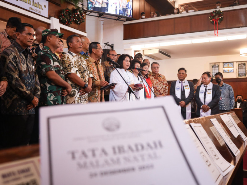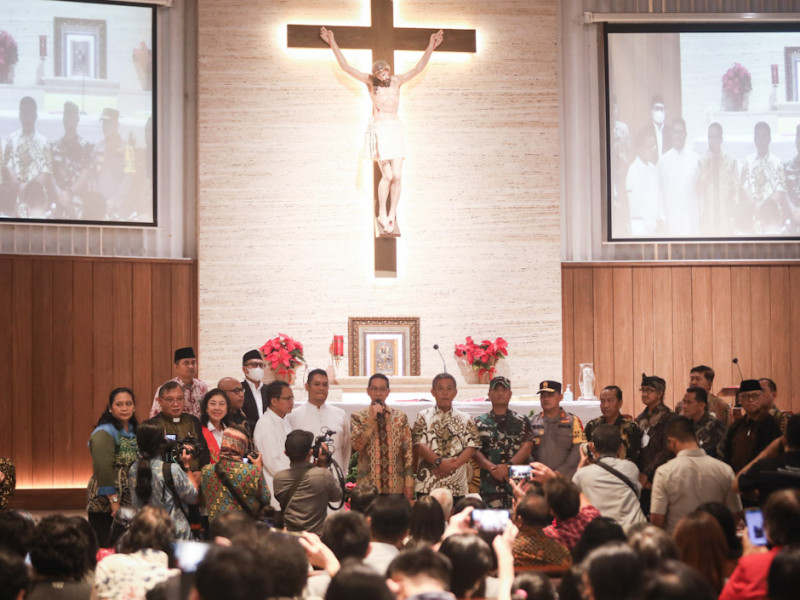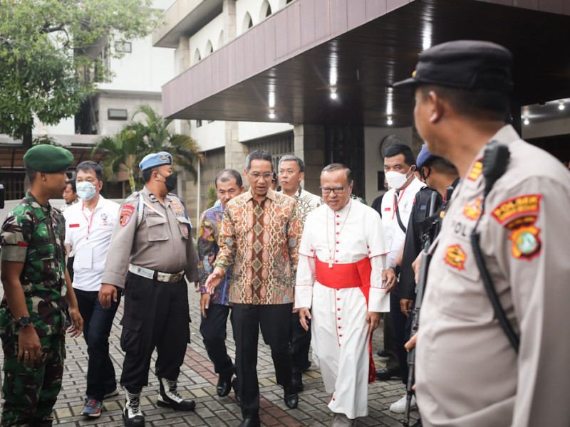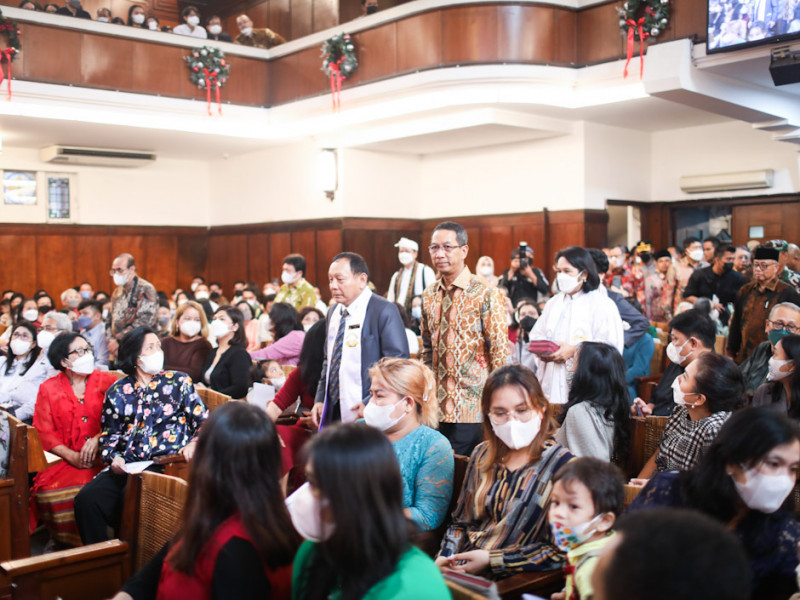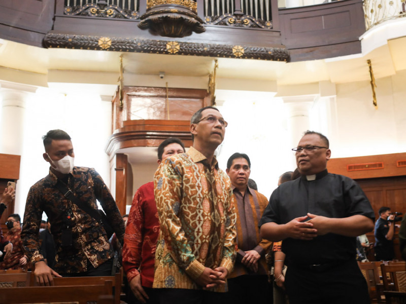Penjabat (Pj) Gubernur DKI Jakarta, Heru Budi Hartono bersama jajaran Forum Komunikasi Pimpinan Daerah (Forkopimda) melakukan kunjungan ke sejumlah gereja di wilayah Jakarta Pusat, Sabtu (24/12). Adapun gereja-gereja yang dikunjungi dalam rangka menyambut Natal tahun 2022 tersebut adalah GPIB Immanuel, Gereja Katedral Jakarta, Gereja Katolik St. Ignatius Loyola, dan GPIB Paulus. (Foto: Nugroho Sejati/beritajakarta.id)