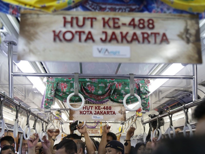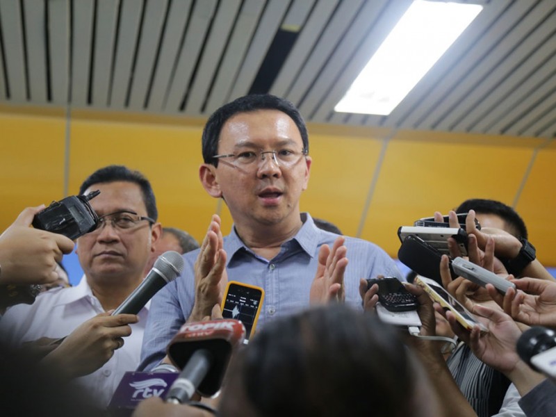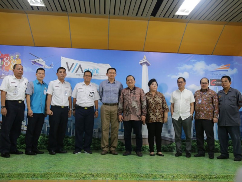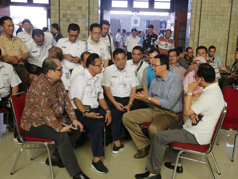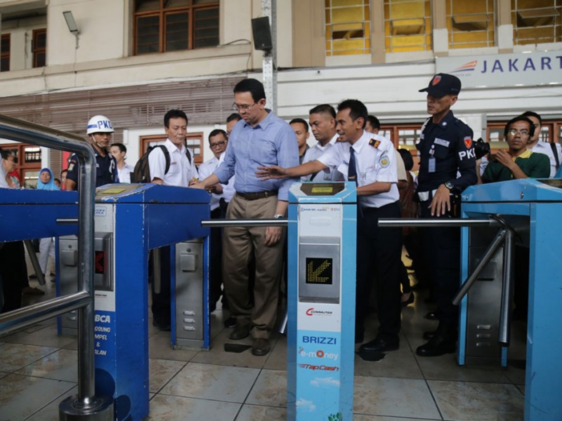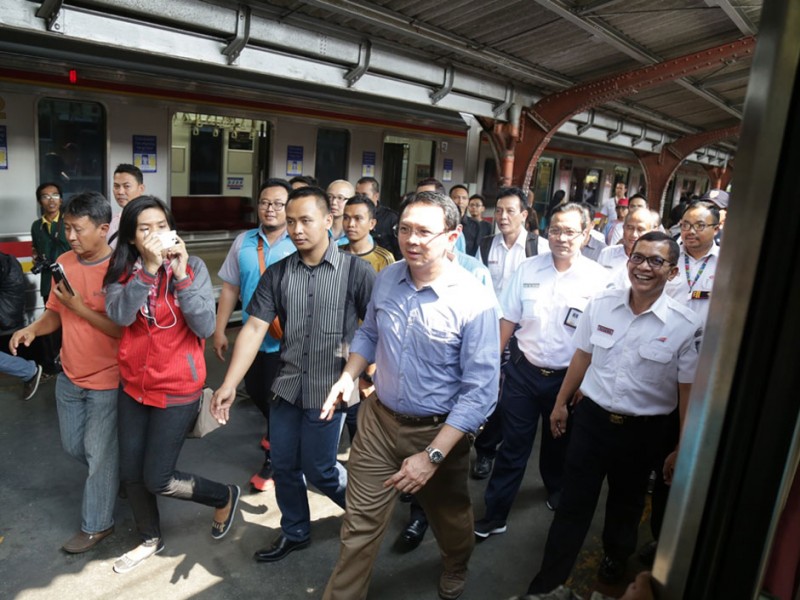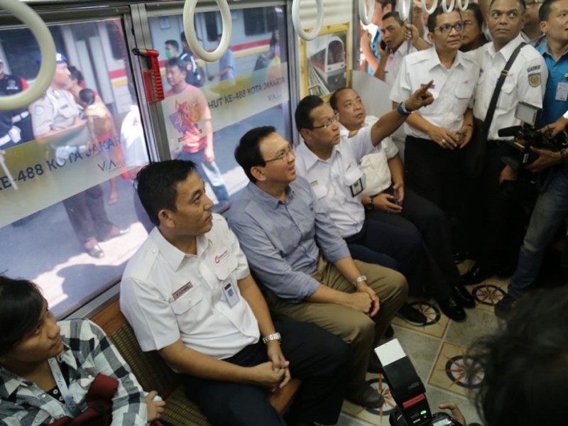Gubernur DKI Jakarta, Basuki Tjahaja Purnama menghadiri undangan uji coba gerbong kereta rel listrik (KRL) Commuter Line bertema Museum, Minggu (21/06/2015). Secara khusus gerbong ini dibuat untuk menyambut HUT ke-488 Kota Jakarta.