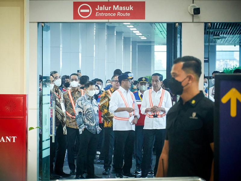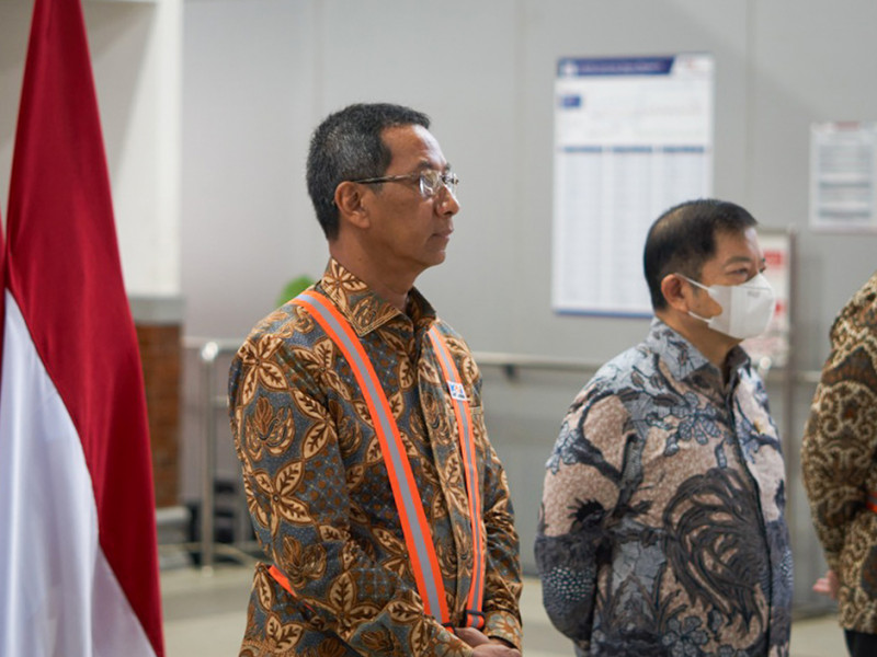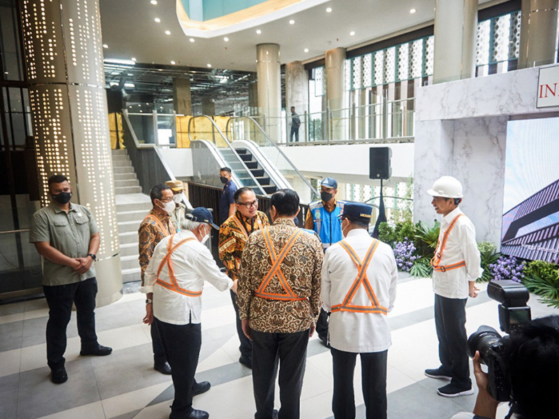 Penjabat (Pj) Gubernur DKI Jakarta, Heru Budi Hartono, turut meninjau proyek Stasiun Light Rail Transit (LRT) Taman Mini Indonesia Indah (TMII) dan Stasiun Manggarai mendampingi Presiden Joko Widodo, Senin (26/12). Pemprov DKI akan mendukung optimalisasi proyek stasiun LRT dan Kereta Rel Listrik (KRL) dengan pembangunan sarana dan prasarana sekitar stasiun. (Foto: Nugroho Sejati/beritajakarta.id)
