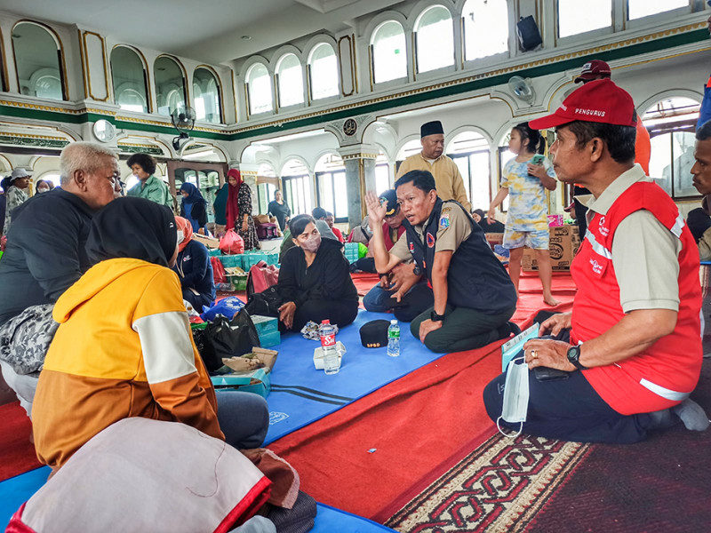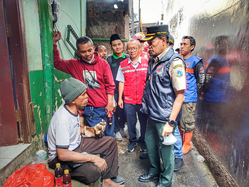 Kepala Pelaksana Badan Penanggulangan Bencana Daerah (BPBD) Provinsi DKI Jakarta, Isnawa Adji meninjau sekaligus menyerahkan bantuan logistik tambahan kepada warga terdampak kebakaran di Jalan Bangka Raya, Pela Mampang, Mampang Prapatan, Jakarta Selatan, Selasa (27/12). Adapun bantuan logistik tambahan yang akan didistribusikan oleh BPBD DKI Jakarta antara lain 30 dus air mineral, 150 lembar selimut, 50 pcs mukena, 50 pcs sarung, 50 lembar terpal, 100 paket family kit, 100 paket sandang, 25 dus makanan siap saji, 1.000 pcs masker, 222 pcs sabun, dan enam dus pembalut. (Foto: Nugroho Sejati/beritajakarta.id)