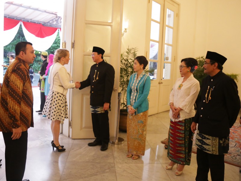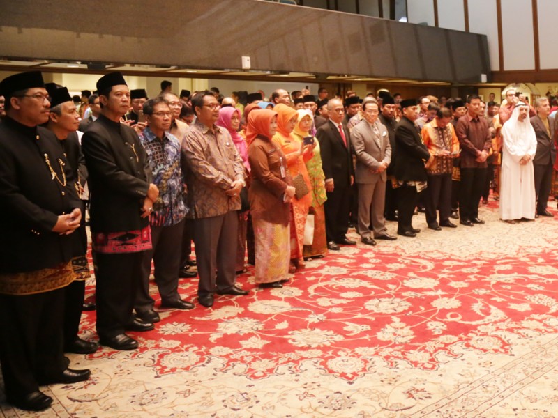 Malam Resepsi HUT ke-488 Kota Jakarta, yang dihelat di Balaikota DKI Jakarta, Senin (22/06/2015) berlangsung meriah. Sejumlah tamu undangan termasuk dari perwakilan negara sahabat nampak hadir. Suasana semakin semarak dan meriah dengan penampilan sejumlah artis papan atas Ibukota. (Reza/beritajakarta.com)