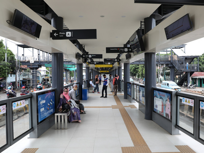 Halte Transjakarta Matraman Baru, Jakarta Timur mulai diuji coba sejak Kamis, (22/12). Halte ini merupakan salah satu dari 46 halte yang direvitalisasi PT Transportasi Jakarta (Transjakarta) secara bertahap pada tahun 2022. Adapun perubahan yang dihadirkan tak hanya dari segi tampilan saja, melainkan penambahan fasilitas untuk meningkatkan kenyamanan bagi pelanggan. (Foto: Reza Hapiz/beritajakarta.id)