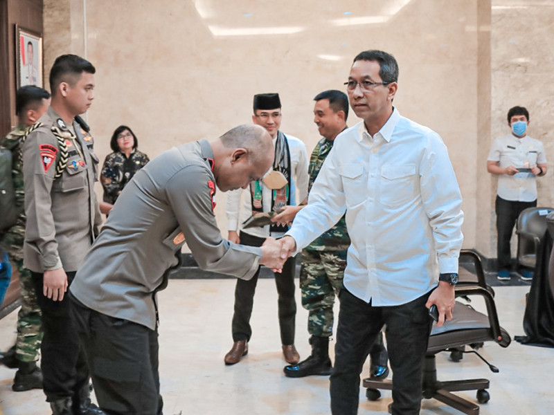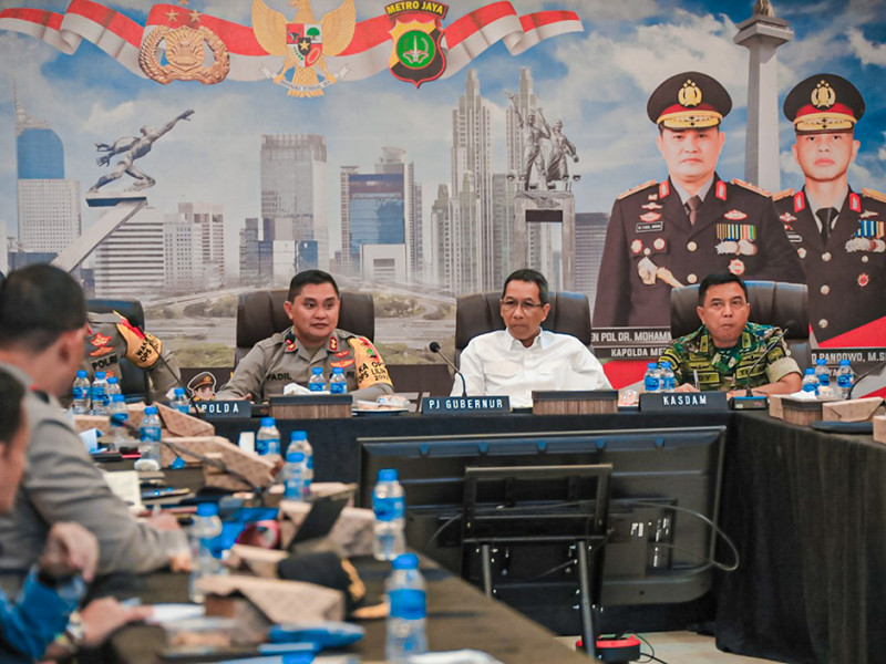 Pemerintah Provinsi (Pemprov) DKI Jakarta melakukan rapat teknis dan koordinasi terkait kegiatan perayaan malam Tahun Baru 2023 dengan unsur Kepolisian dan TNI. Pj Gubernur DKI Jakarta, Heru Budi Hartono, menegaskan bahwa sinergi tiga pilar siap menyukseskan kegiatan perayaan tutup tahun 2022 di seluruh wilayah Kota Jakarta. (Foto: Nugroho Sejati/beritajakarta.id) #tahunbaru2023