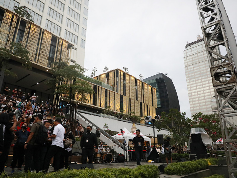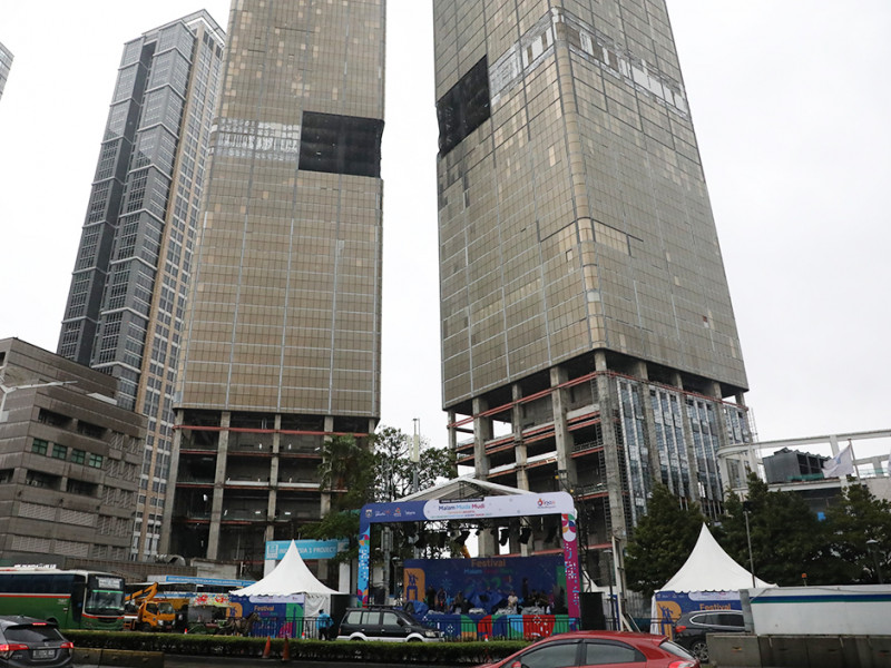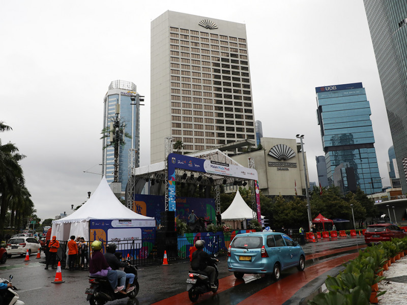 Menjelang perayaan malam pergantian tahun, sejumlah panggung sudah mulai berdiri di sepanjang Jalan MH Thamrin hingga Jalan Sudirman, Jakarta Pusat, Sabtu (31/12). Nantinya, panggung-panggung tersebut akan diisi pertunjukan musik beraneka genre yang dikemas dalam acara bertajuk \"Malam Muda- Mudi\" dengan konsep car free night (CFN). (Foto: Mochamad Tresna Suheryanto/beritajakarta.id) #tahunbaru2023
