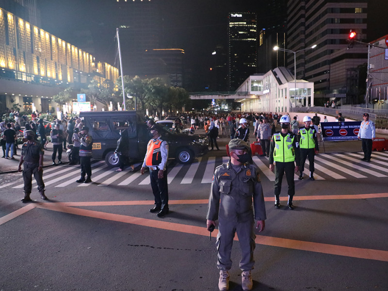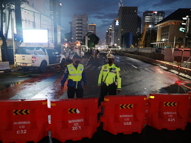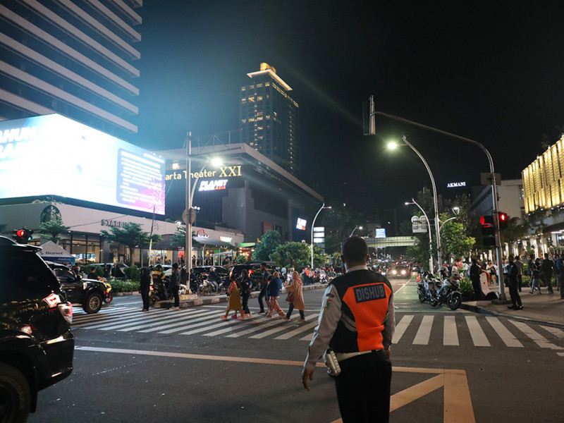 Dalam rangka mendukung kegiatan Car Free Night (CFN) Festival Muda-Mudi, ruas Jalan Sudirman-Thamrin mulai dilakukan penutupan secara bertahap mulai pukul 18.00. Kedua ruas jalan tersebut ditutup secara keseluruhan mulai pukul 20.00 WIB hingga pukul 02.00 WIB pada 1 Januari 2023. (Foto: Mochamad Tresna Suheryanto/beritajakarta.id) #tahunbaru2023
