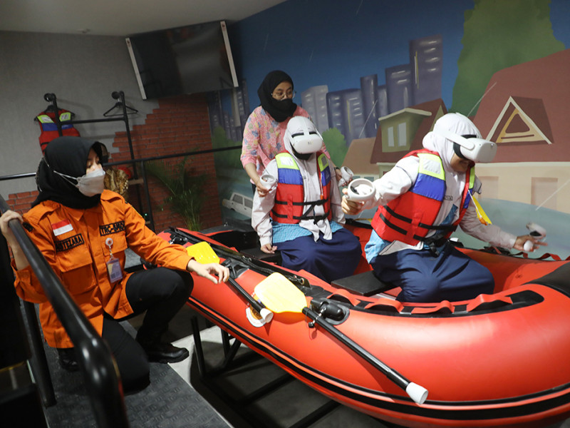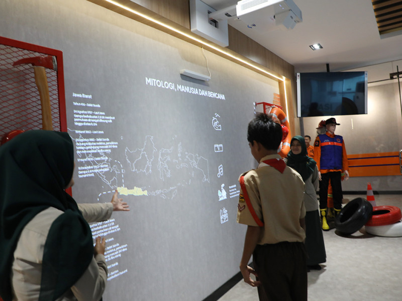 Sejumlah pelajar tampak antusias mengunjungi Ruang Komunikasi, Informasi dan Edukasi (KIE) Kebencanaan BPBD DKI Jakarta. Ruang KIE Kebencanaan hadir sebagai pusat literasi dan edukasi bagi masyarakat demi mewujudkan budaya sadar bencana sekaligus menjadikan Jakarta sebagai kota tangguh bencana. (Foto: Mochamad Tresna Suheryanto/beritajakarta.id)